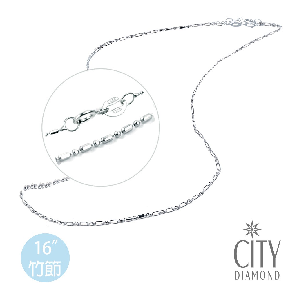 【City Diamond 引雅】14K義大利竹節白K金鍊 項鍊 16吋