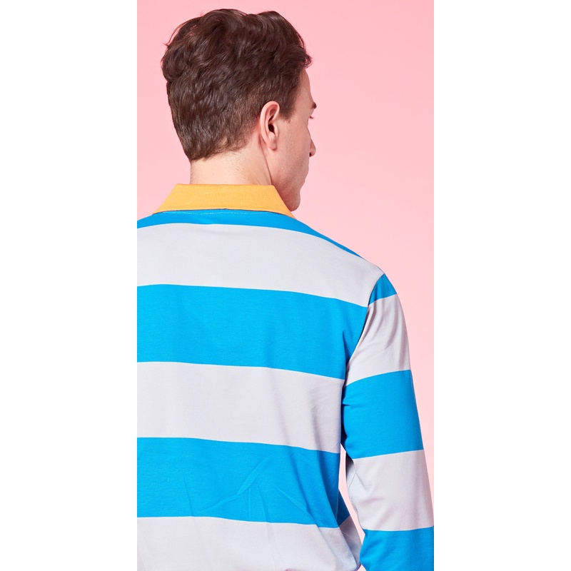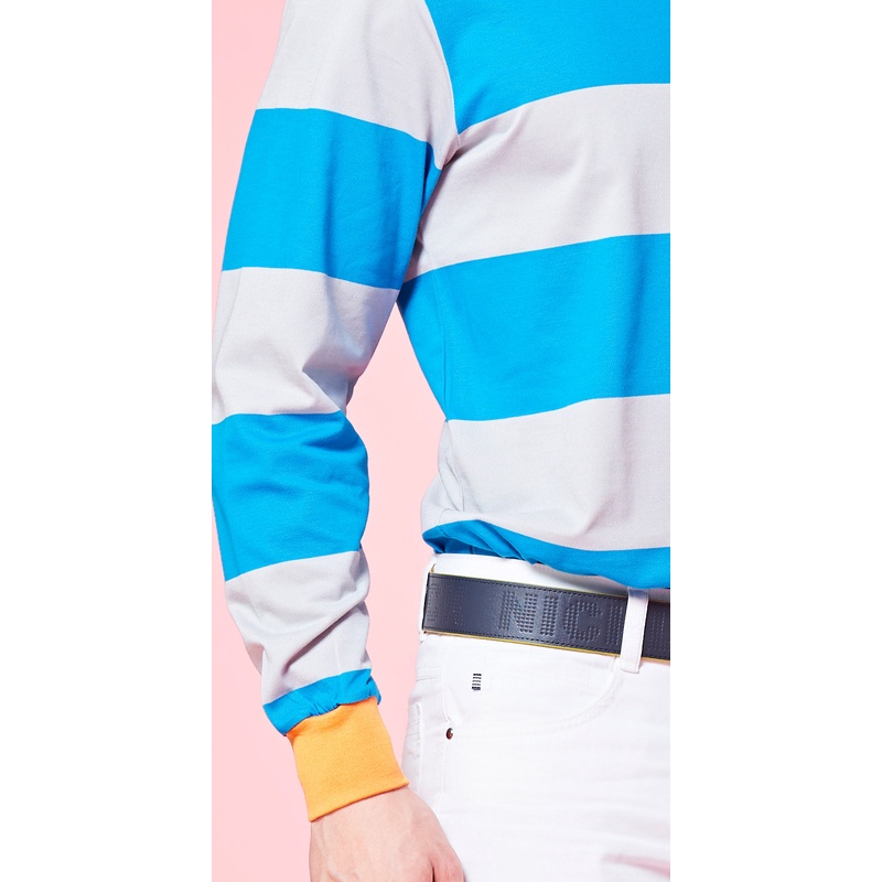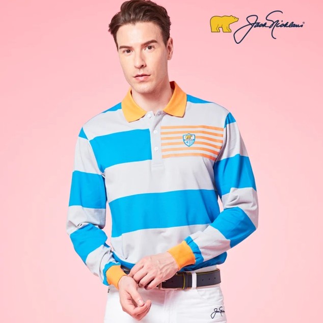【Jack Nicklaus 金熊】GOLF男款條紋吸濕排汗POLO衫高爾夫球衫(藍色)