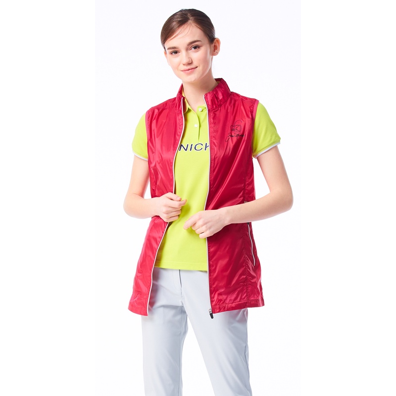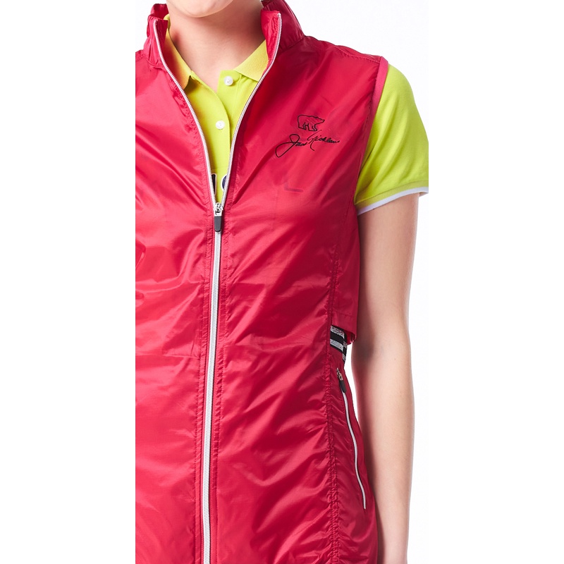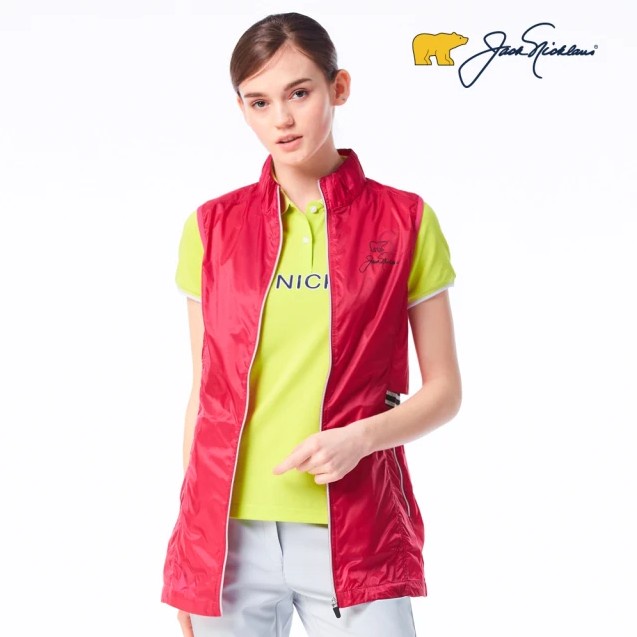 【Jack Nicklaus 金熊】GOLF女款防潑水休閒長版薄背心(紅色)
