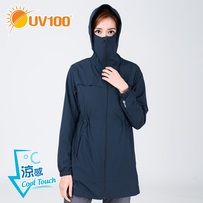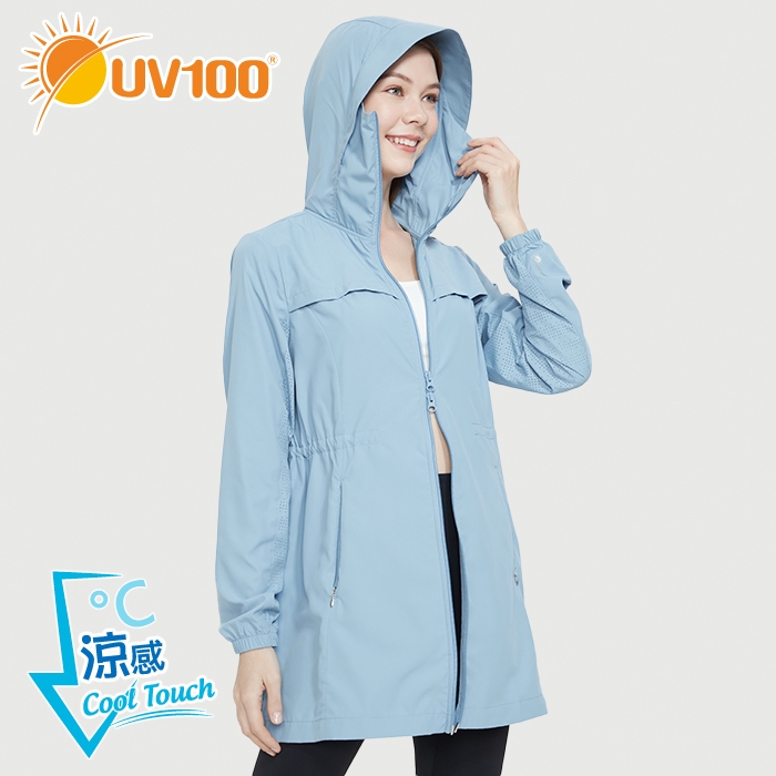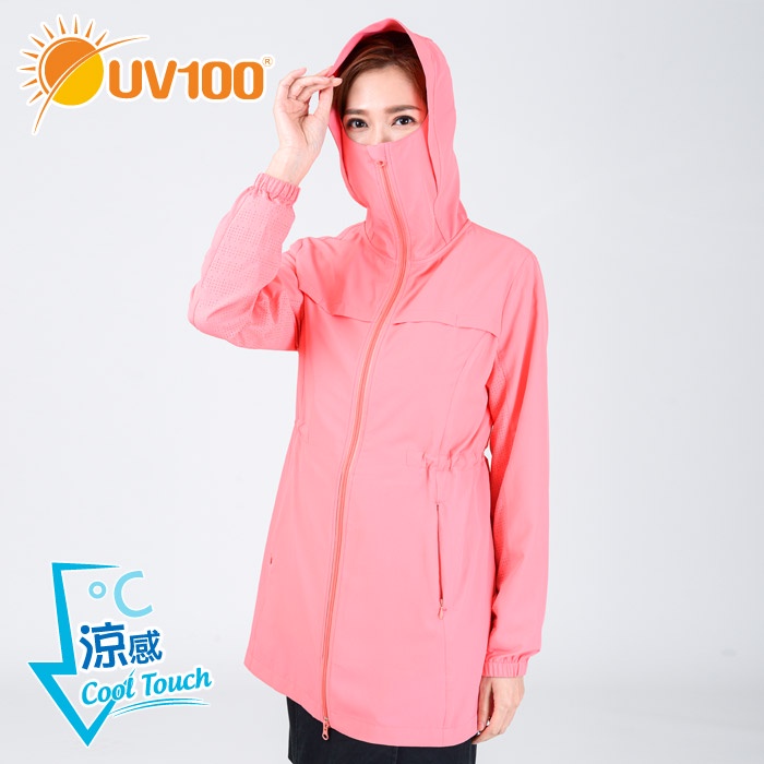 【UV100】 防曬 抗UV-涼感透氣口罩連帽長版外套-女 -(AL21016)