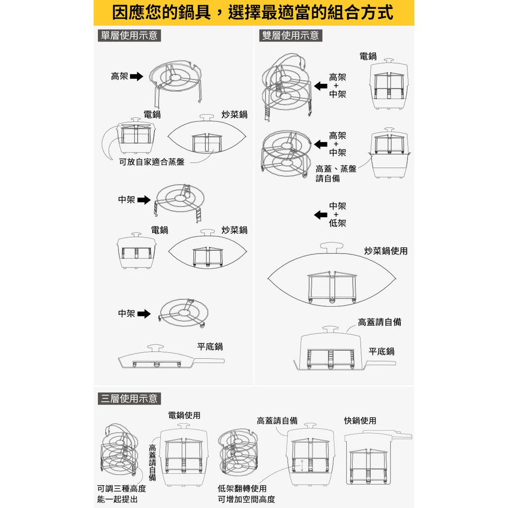 【全站最高折1250元】生活采家 蒸架3件組 台灣製304 高蒸架 隔熱架 菜盤蒸架 不鏽鋼蒸架 電鍋蒸架 蒸飯架