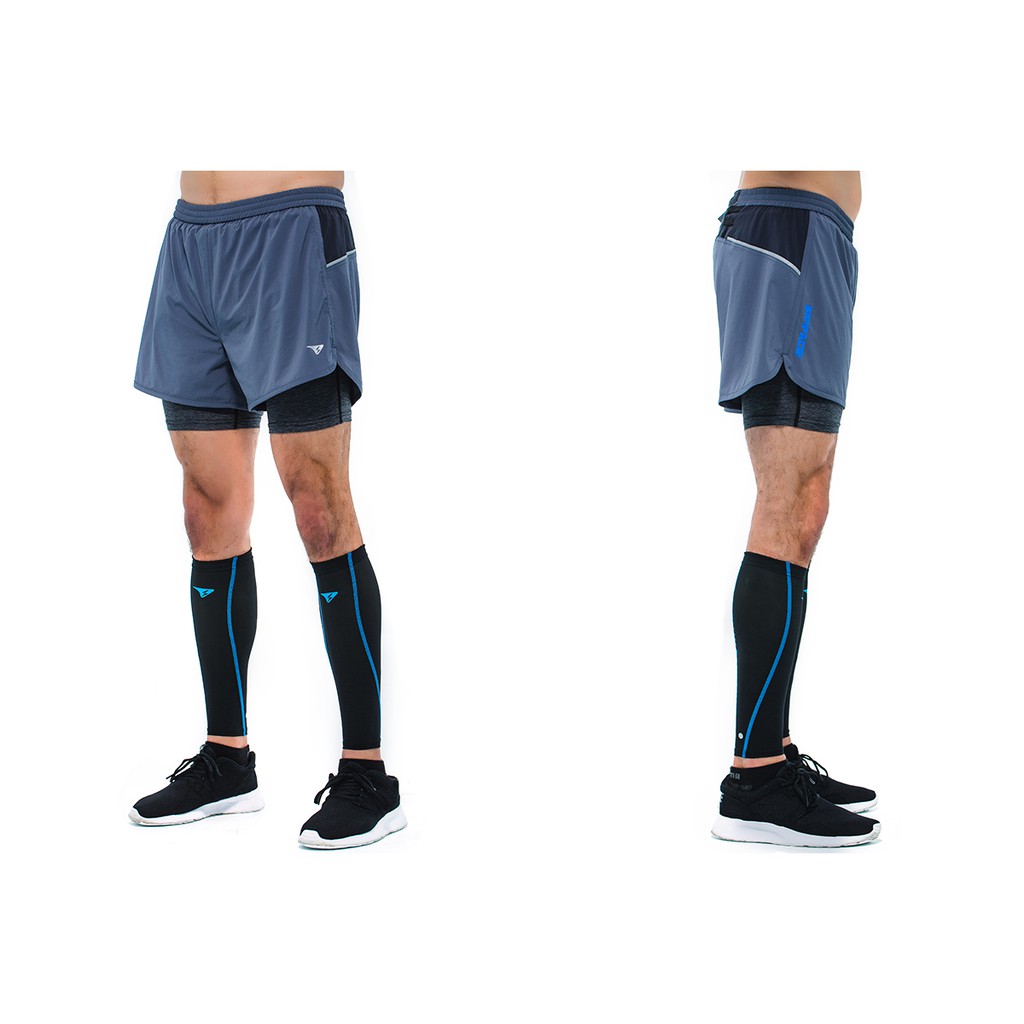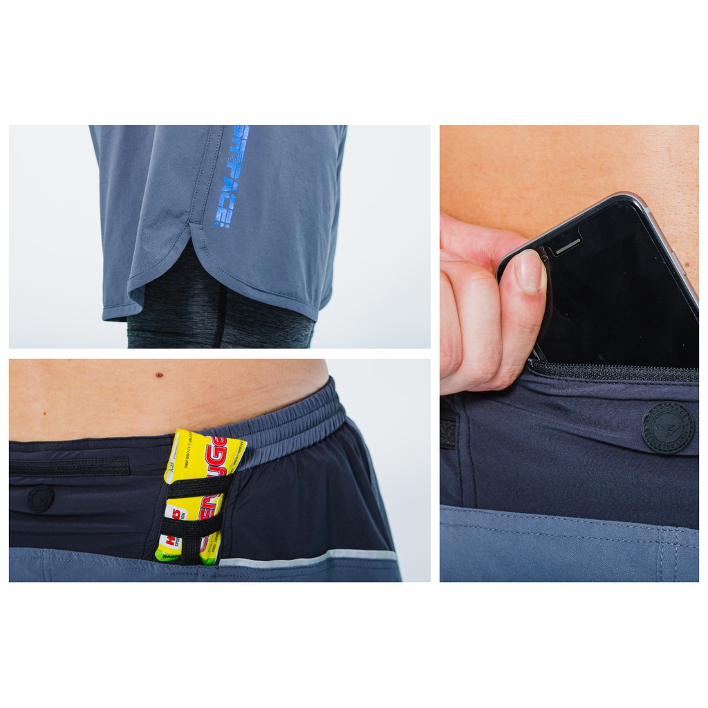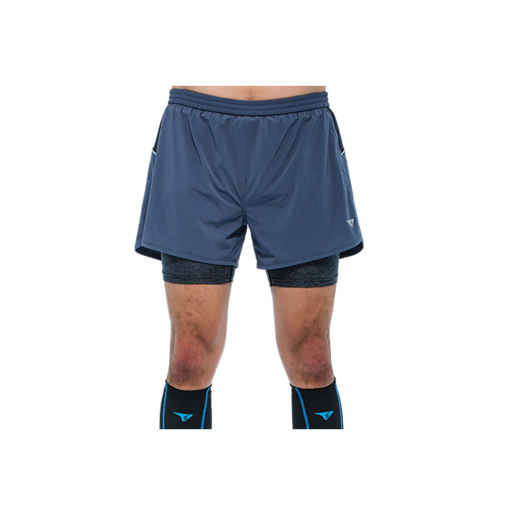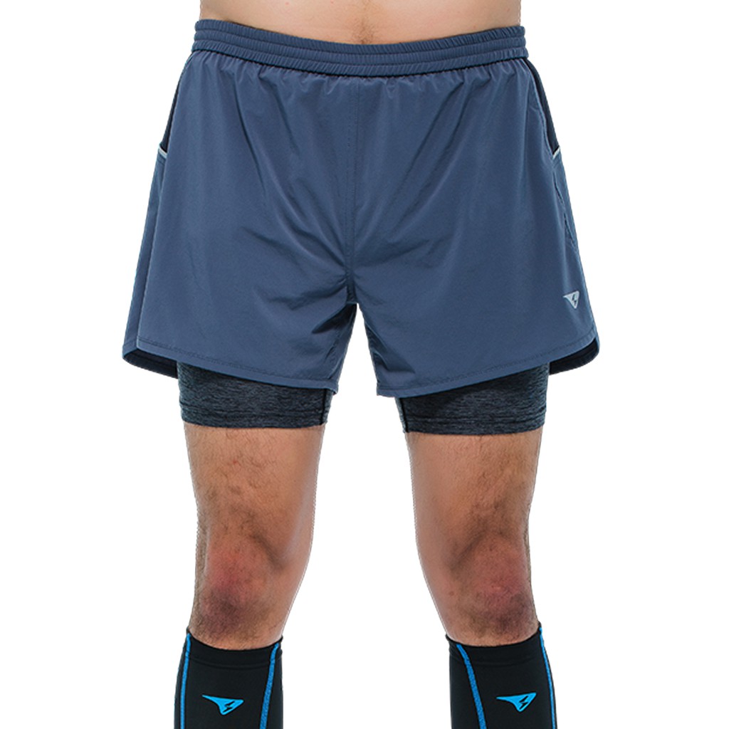 【SUPERACE】SR-PACE二合一慢跑短褲/男款/黑/ 鐵灰