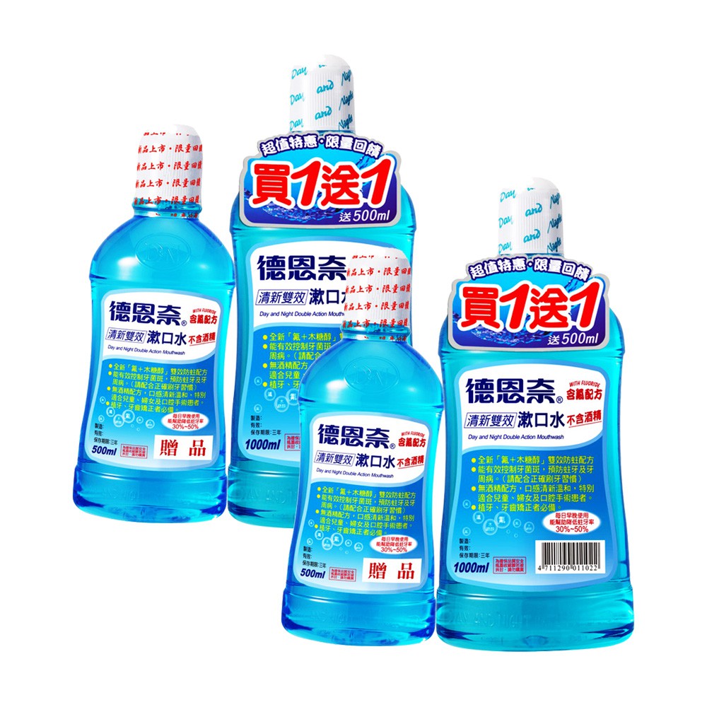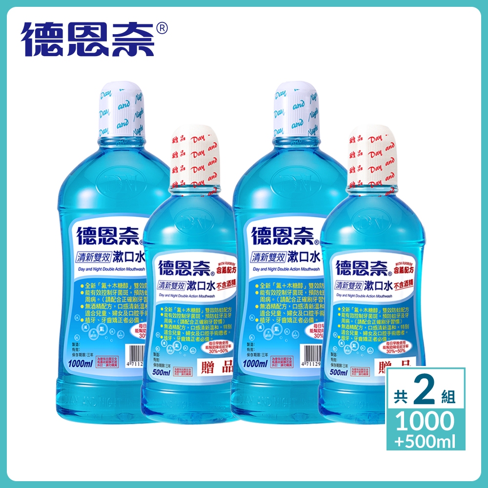 【德恩奈】買大送小 清新雙效漱口水1000ml送500ml X2組-共4瓶