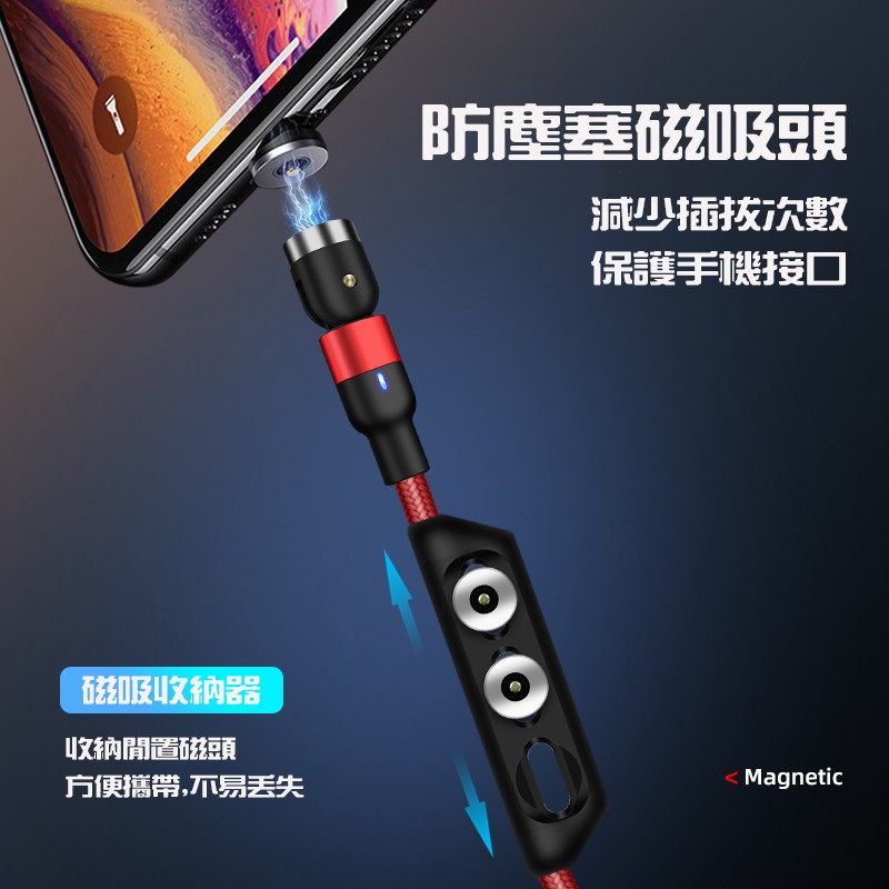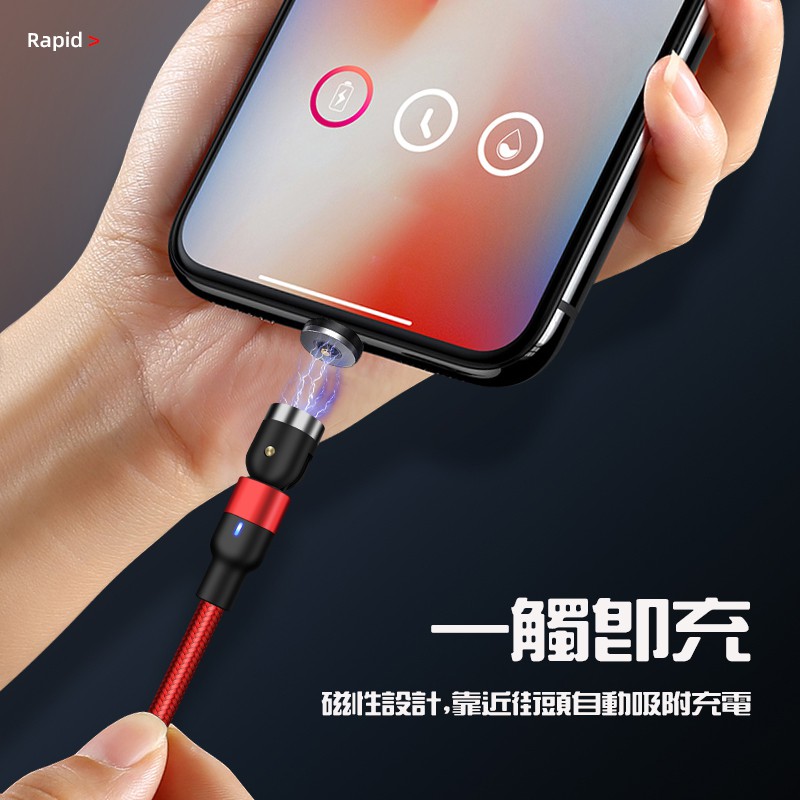 【alfastar】540度磁吸線充電線 圓頭磁吸充電線 快充彎頭線 磁吸線 安卓磁吸線 蘋果充電線 Type-C充電線
