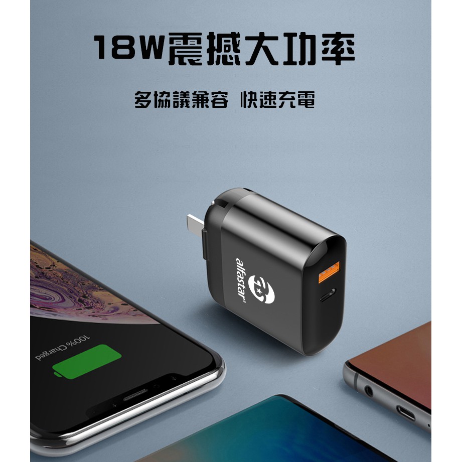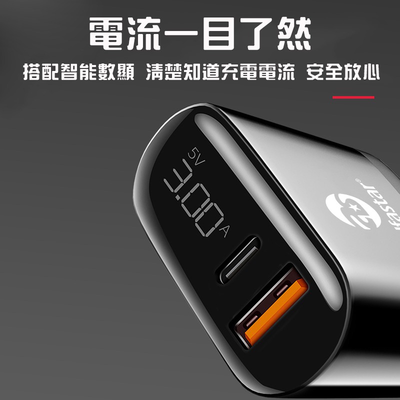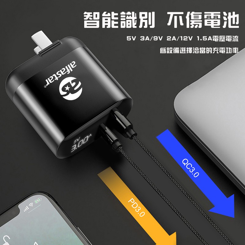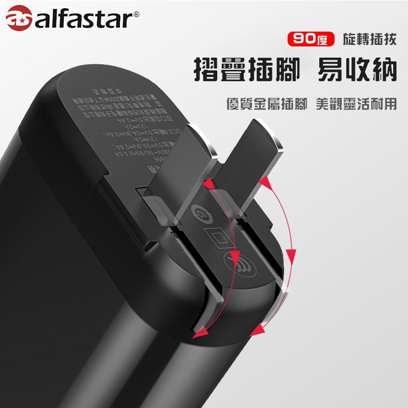 【alfastar】數顯快充 雙孔充電頭 USB+Type-C插座|折疊插頭|顯示電流|手機平板通用