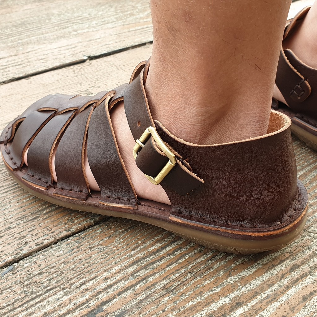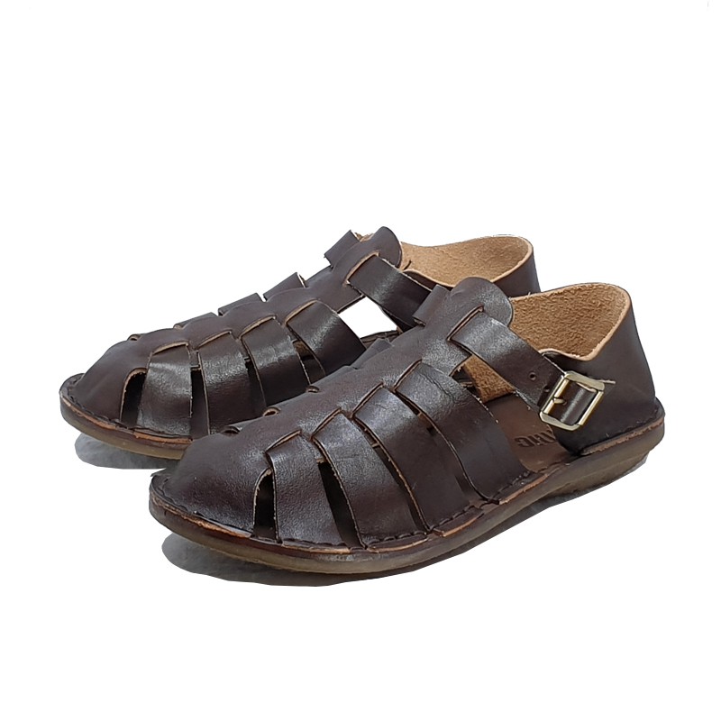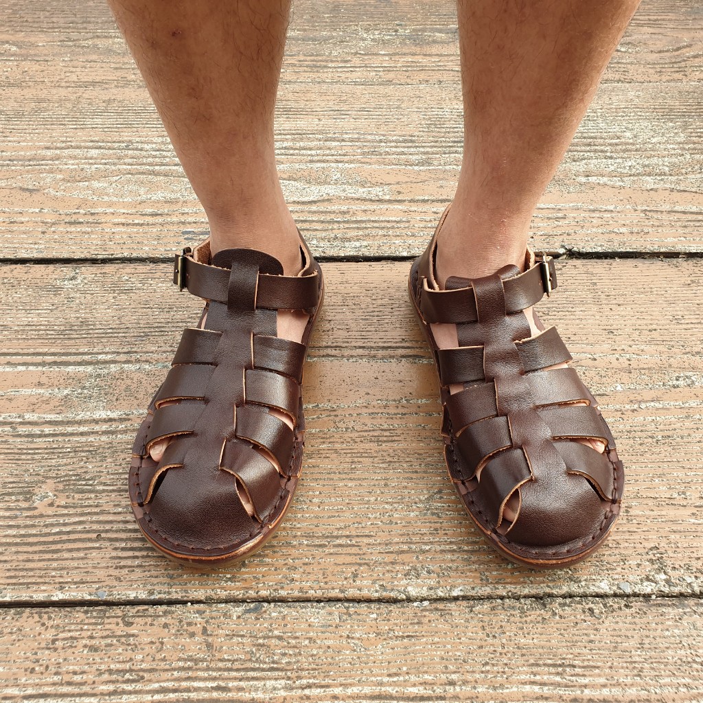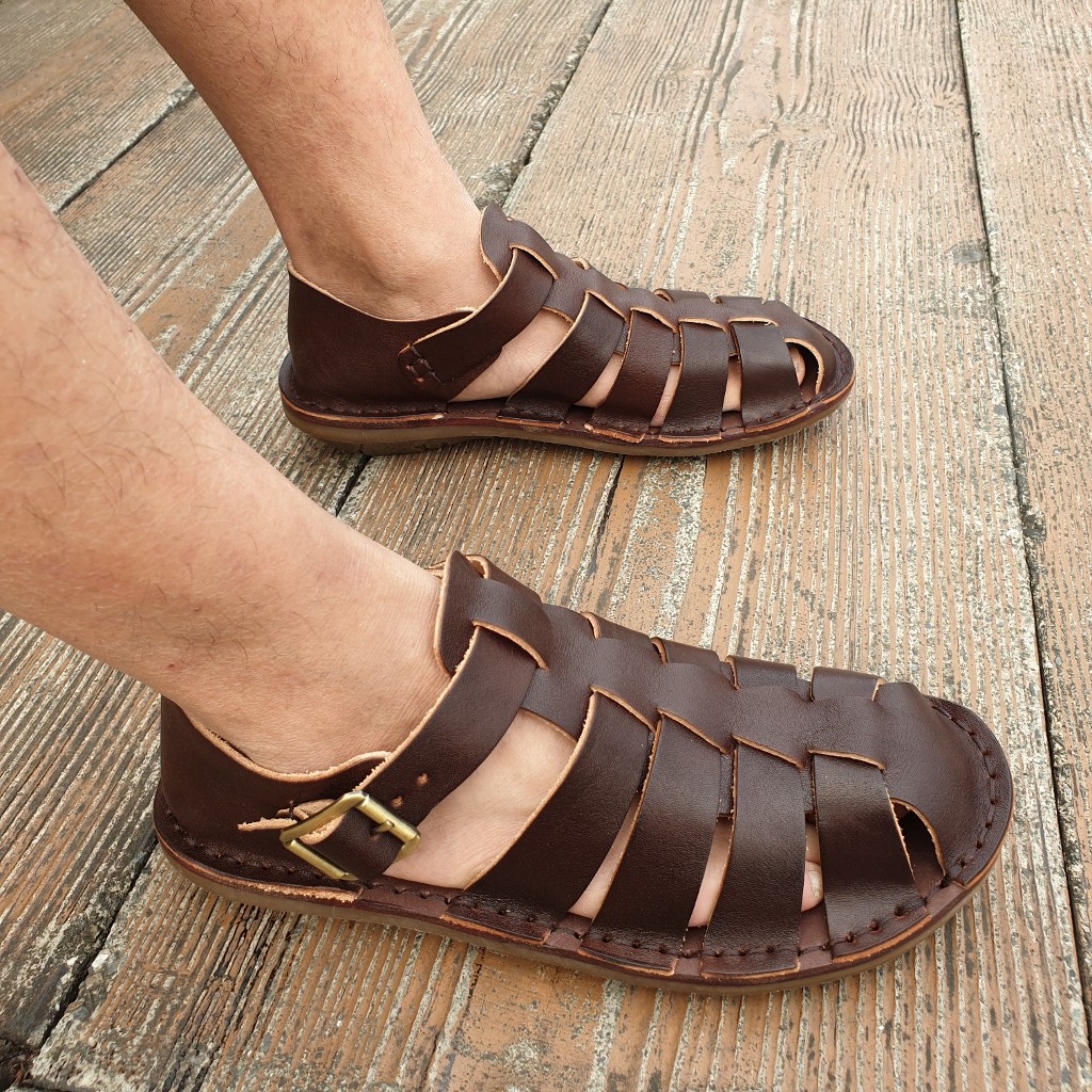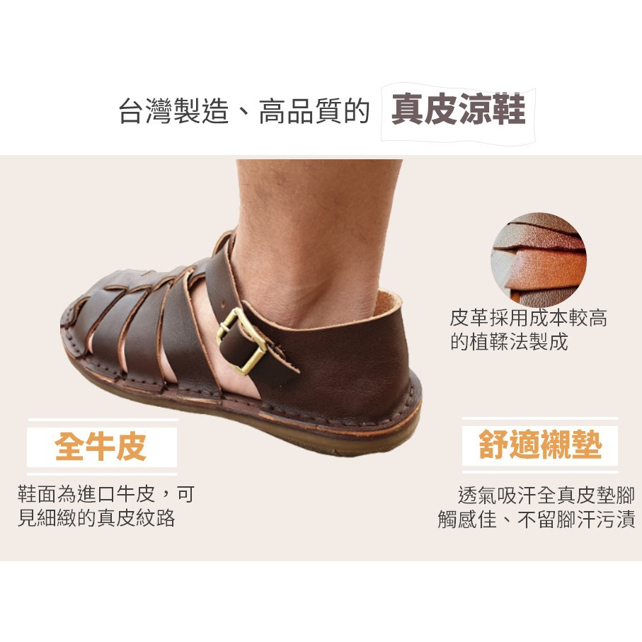 MIT台灣製 手工真皮涼鞋 足弓鞋 護趾涼鞋拖鞋-男R14911咖