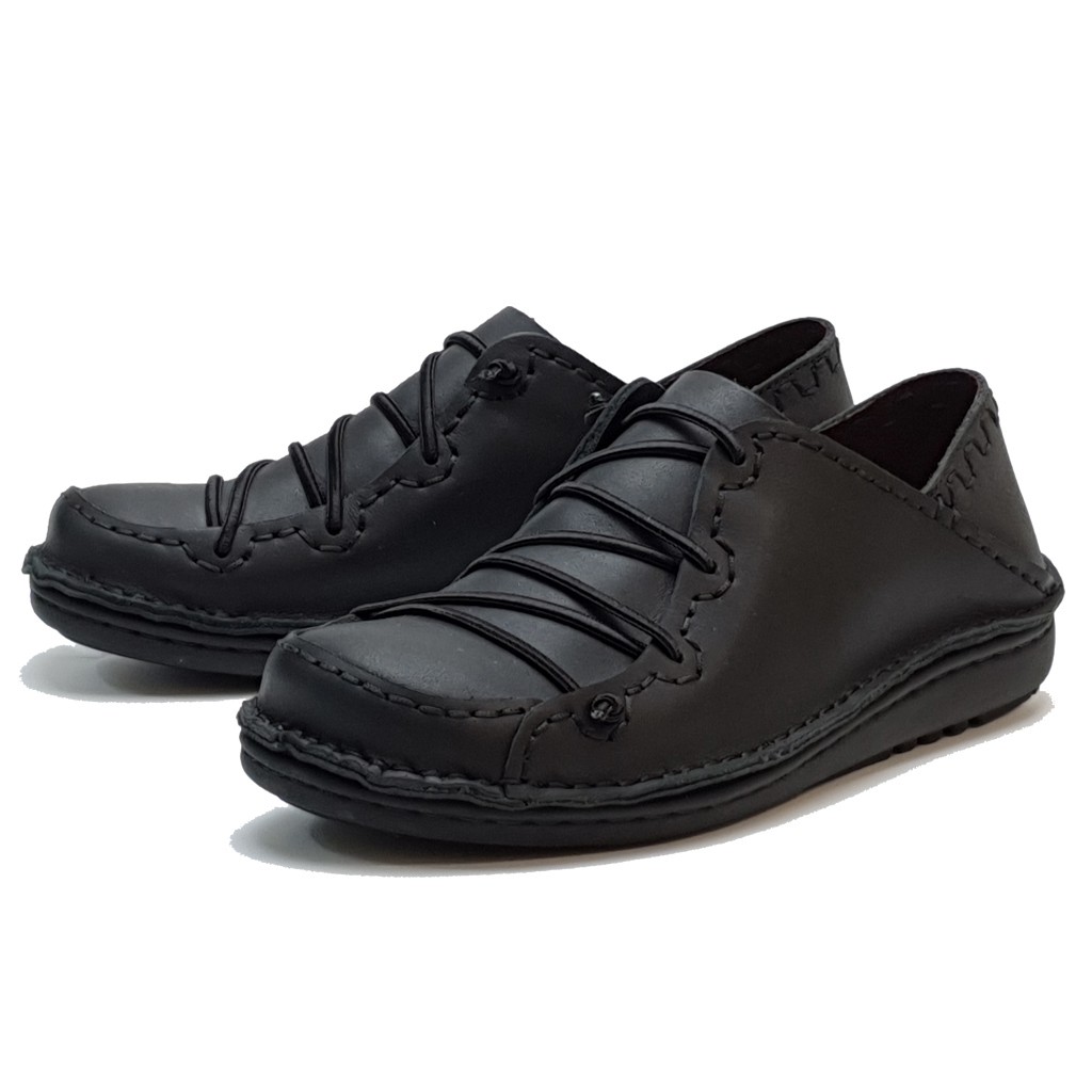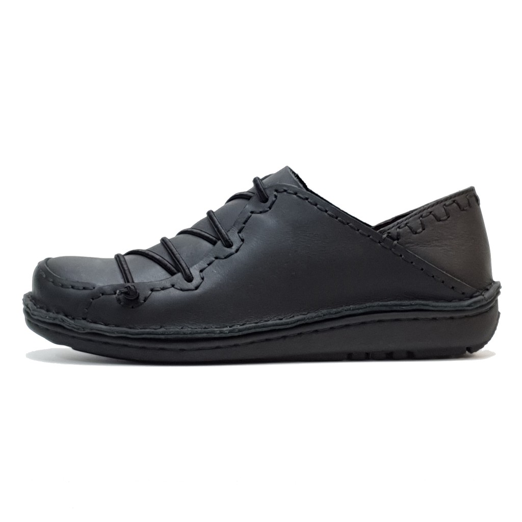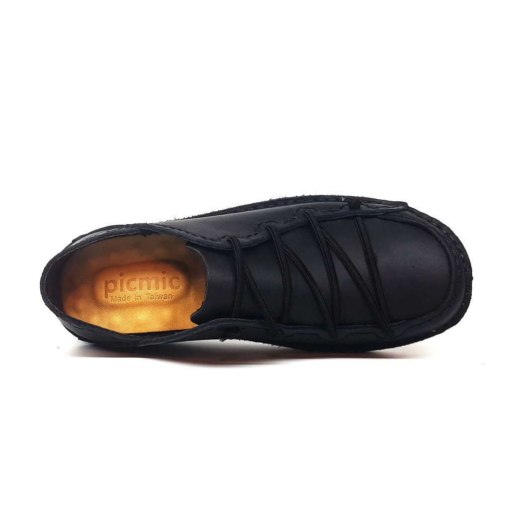 MIT台灣製 手工真皮鞋 氣墊休閒鞋 懶人鞋 - 男個性縫線後踩鞋-黑/黑底