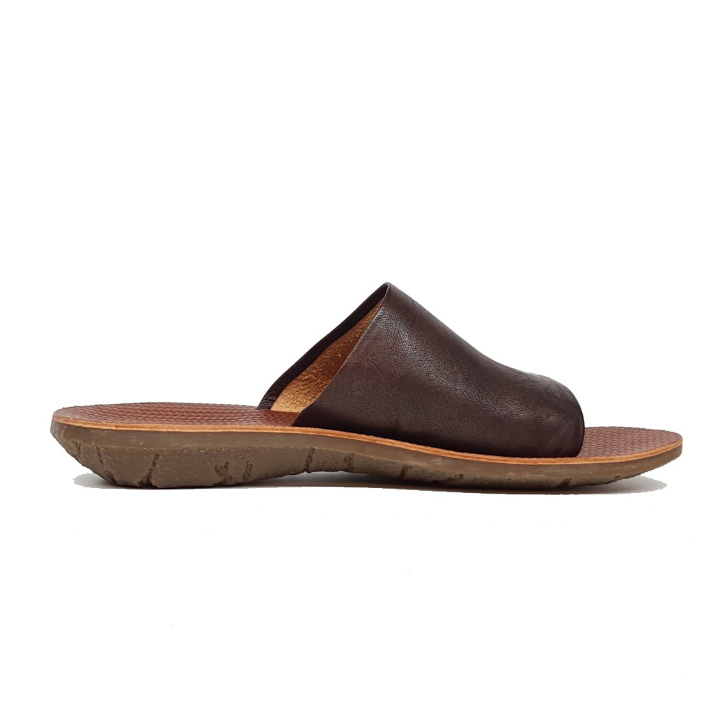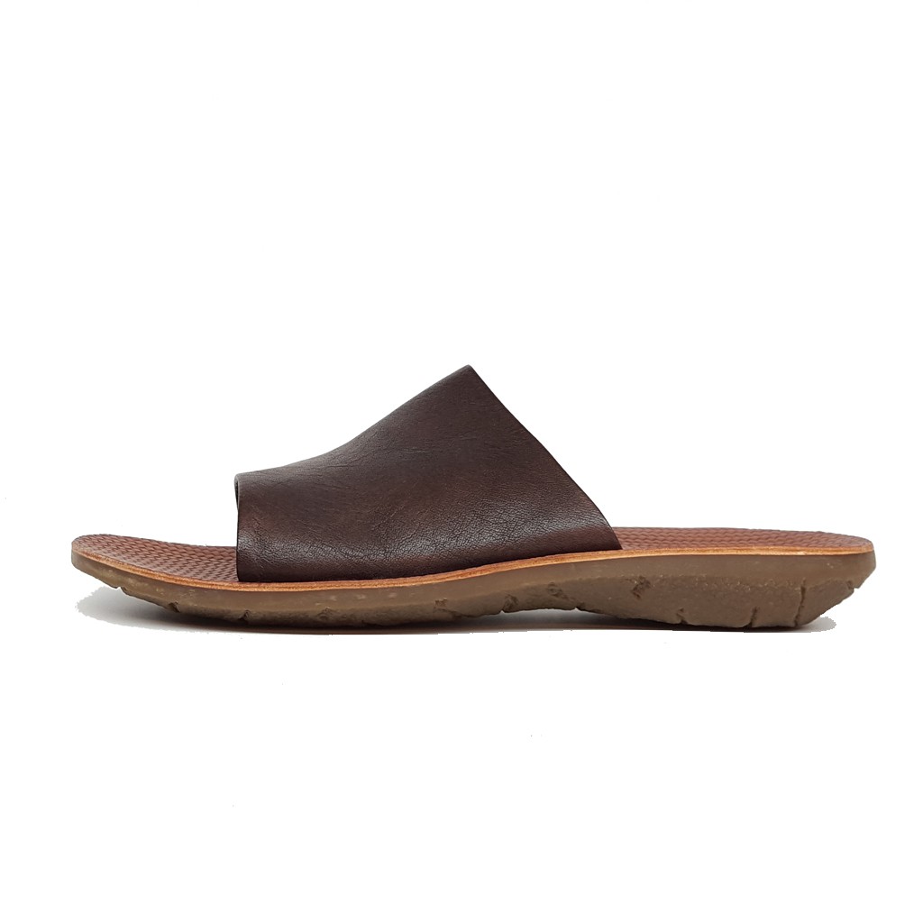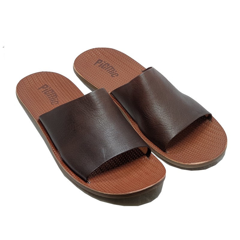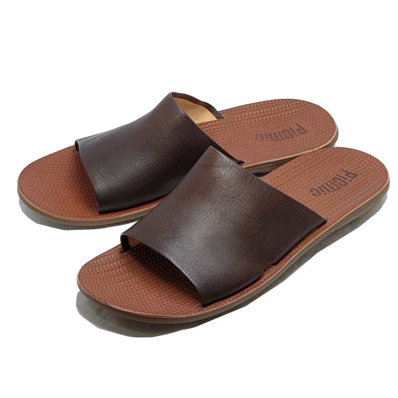 MIT台灣製 手工真皮室內拖鞋 透氣牛皮 足弓鞋 止滑橡膠底 - 男R1599咖