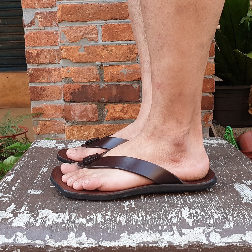 MIT台灣製 人字拖 手工真皮夾腳男拖鞋-R1606咖 有46、47、48號特大尺碼男鞋