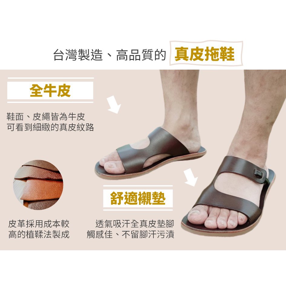 MIT台灣製 足弓鞋 手工真皮拖鞋-男R1314咖