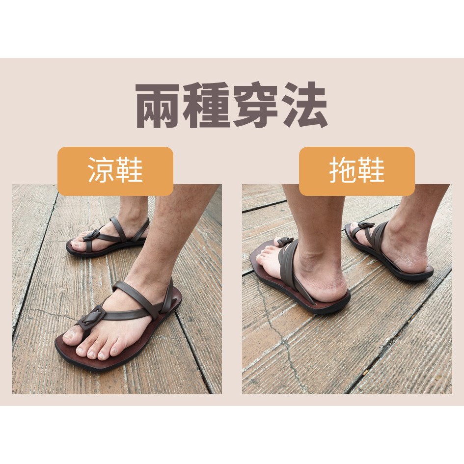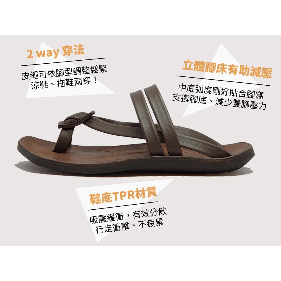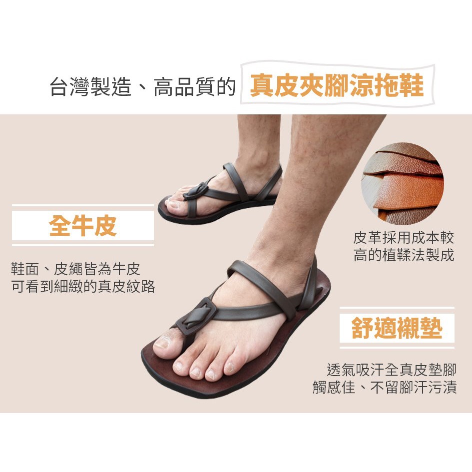 MIT台灣製 兩穿涼鞋拖鞋 手工真皮夾腳拖鞋 夾趾涼鞋-男R1405咖