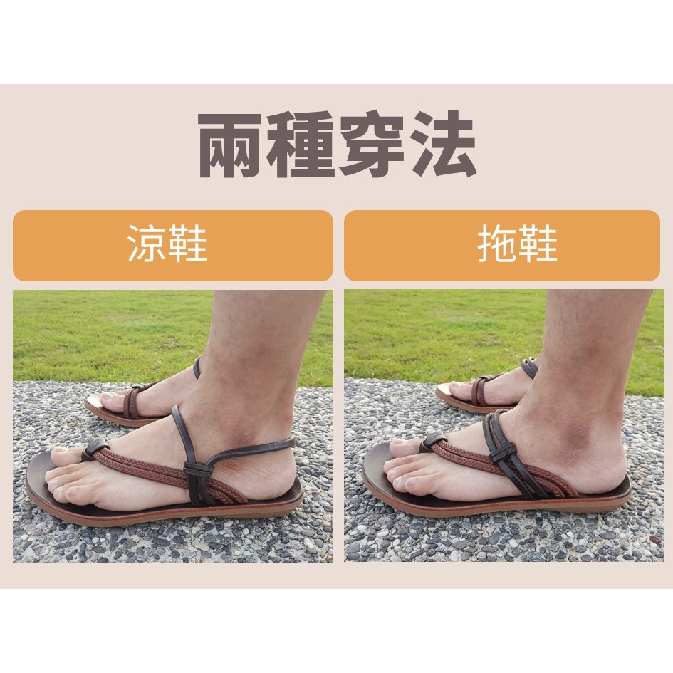 MIT台灣製 兩穿涼鞋拖鞋 手工真皮夾腳拖鞋 夾趾涼鞋-男R1309棕/咖