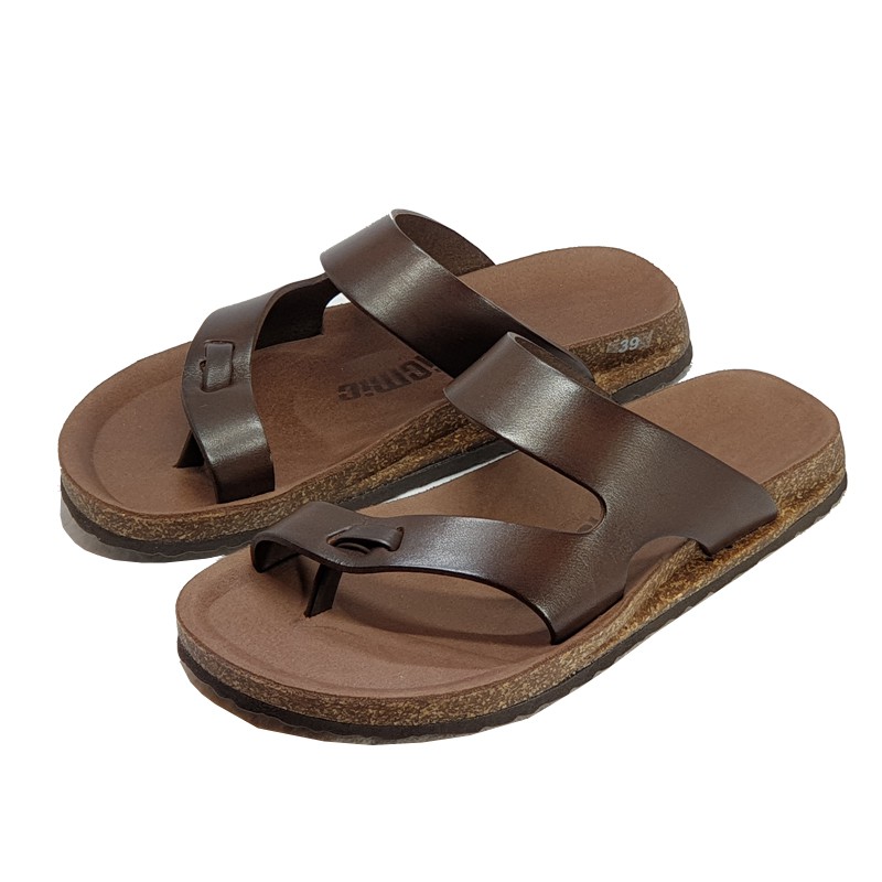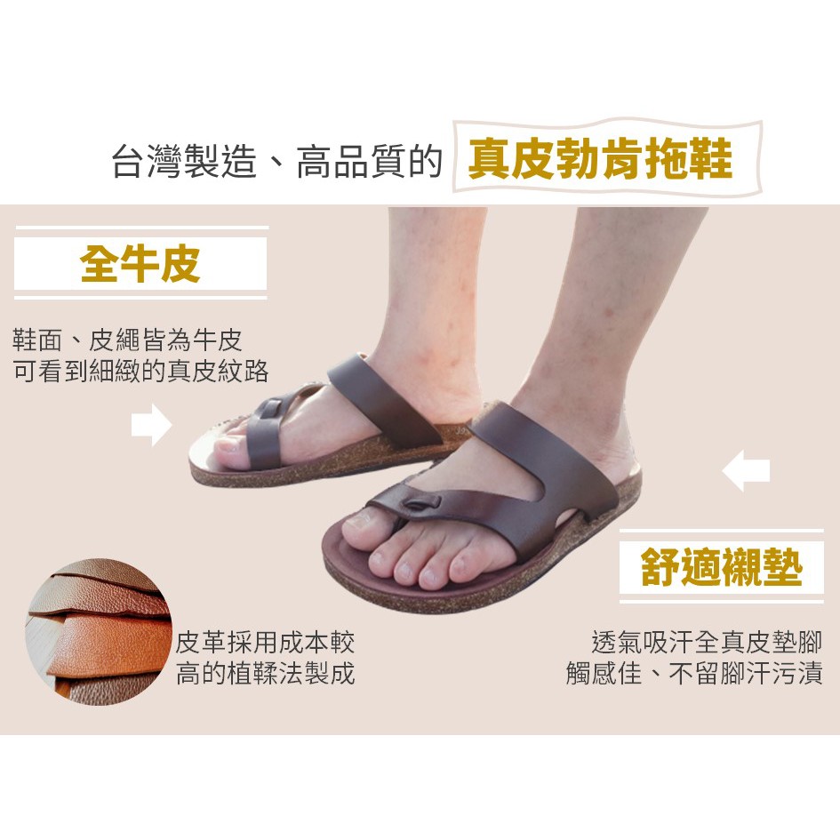 MIT台灣製 勃肯鞋 足弓鞋 手工真皮夾腳拖鞋 夾趾拖鞋-男R215咖