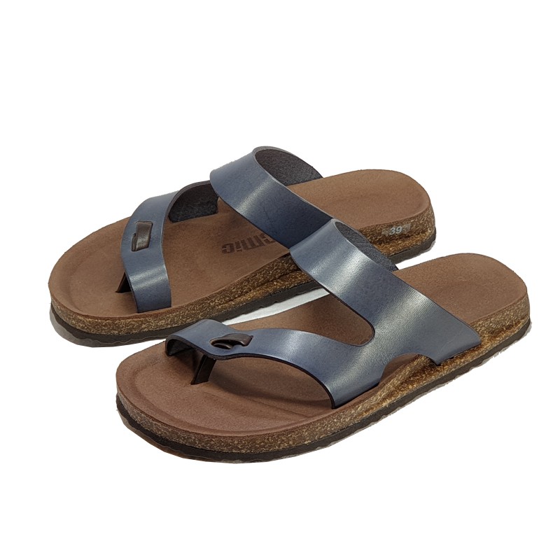 MIT台灣製 勃肯鞋 足弓鞋 手工真皮夾腳拖鞋 夾趾拖鞋-男R215丹寧