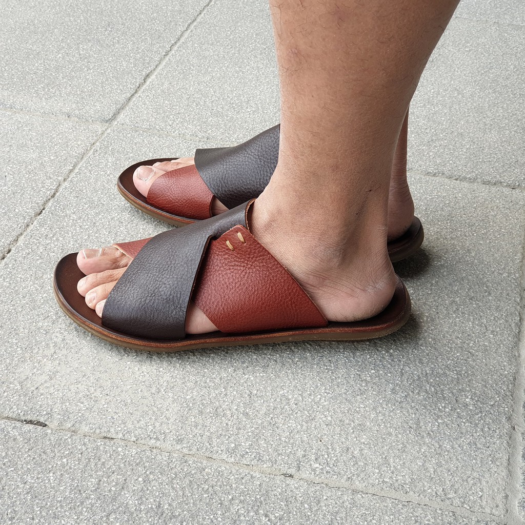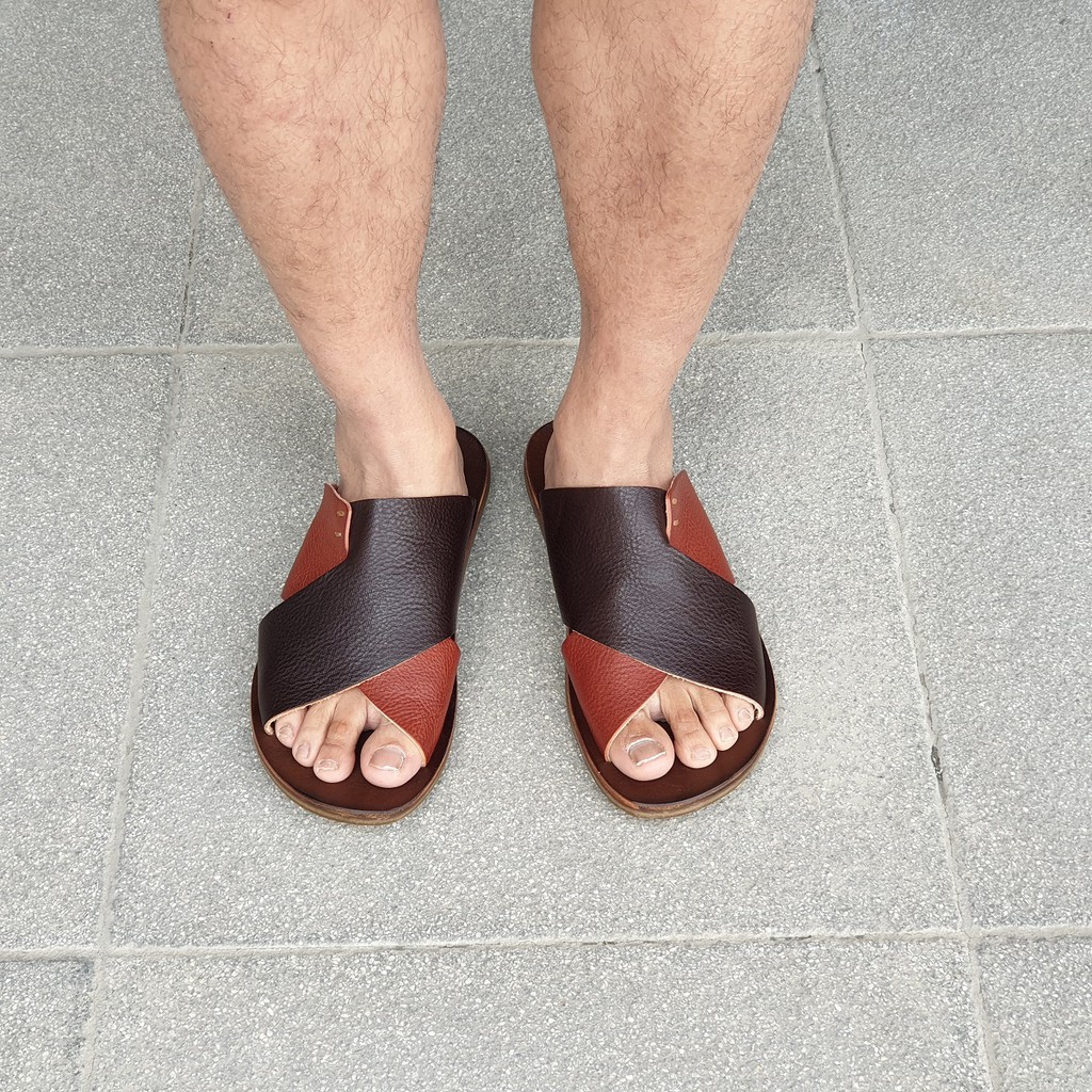 MIT台灣製 足弓鞋 手工真皮拖鞋-男R1741咖/棕