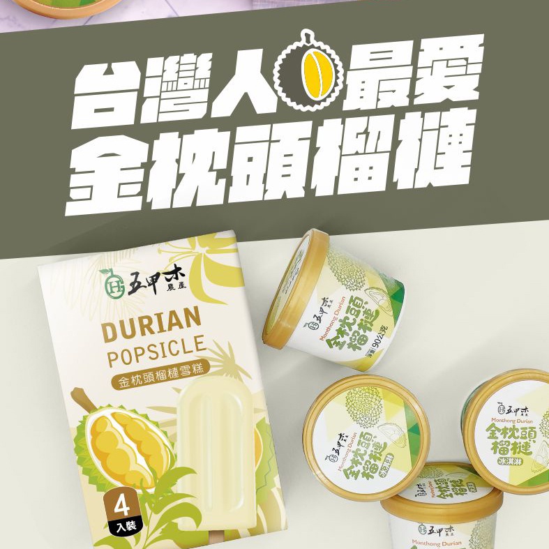 [五甲木]金枕頭榴槤雪糕 4入/盒