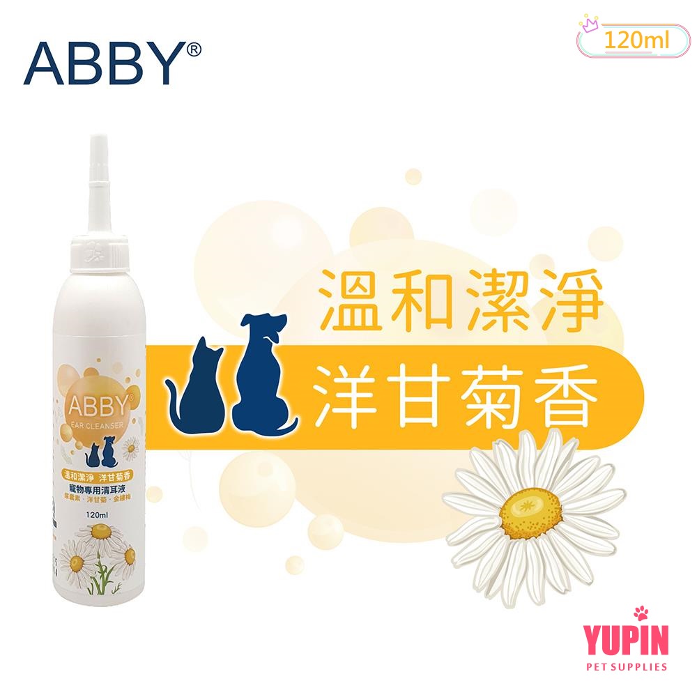 ABBY機能性寵物溫和清耳液120ml 洋甘菊香 精心設計保濕因子 能迅速清除耳垢 成分溫和不刺激 犬貓專用