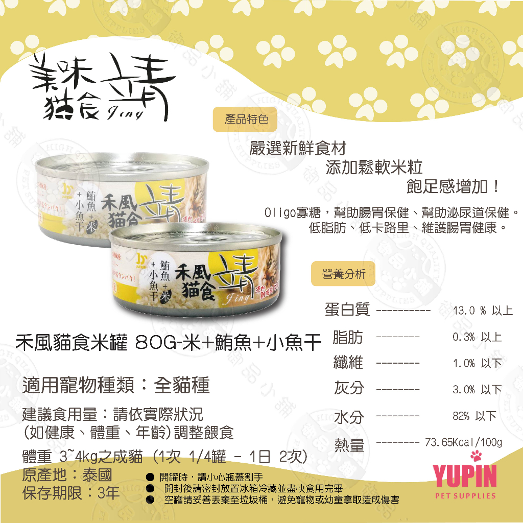 Jing 靖 禾風貓食 特級米罐 80g 靖米罐 貓罐頭 全貓適用 喵星人愛吃 幼貓 成貓 熟齡貓