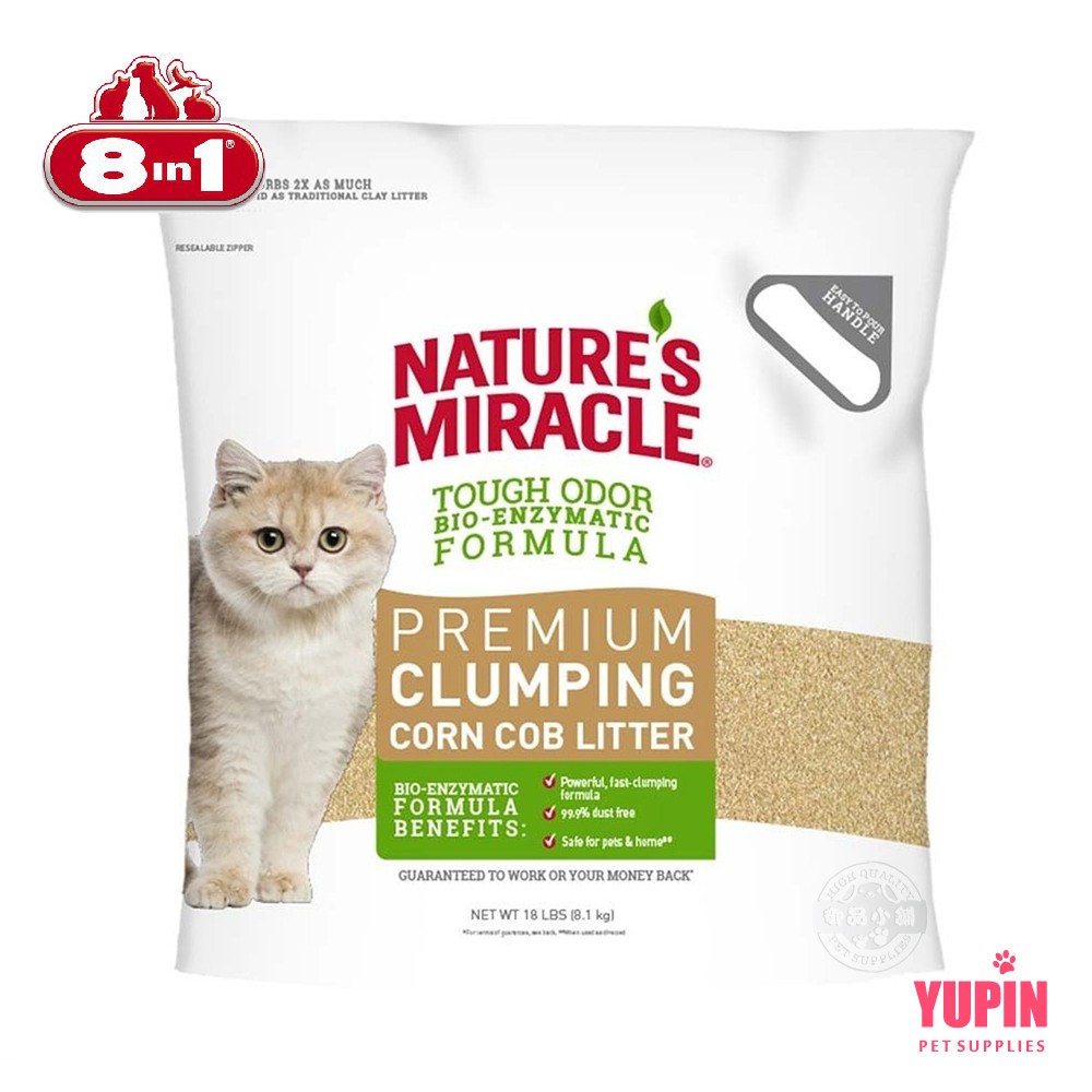 美國 8in1 自然奇蹟 天然酵素除臭凝結貓砂 玉米貓砂 10LB 清潔 除臭