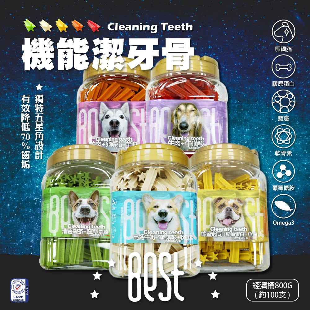 BEST 倍思特 機能潔牙骨 800g (約100支) 五星角潔牙骨 狗零食 清除牙齒汙垢