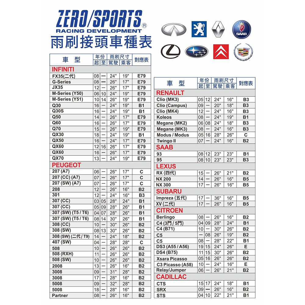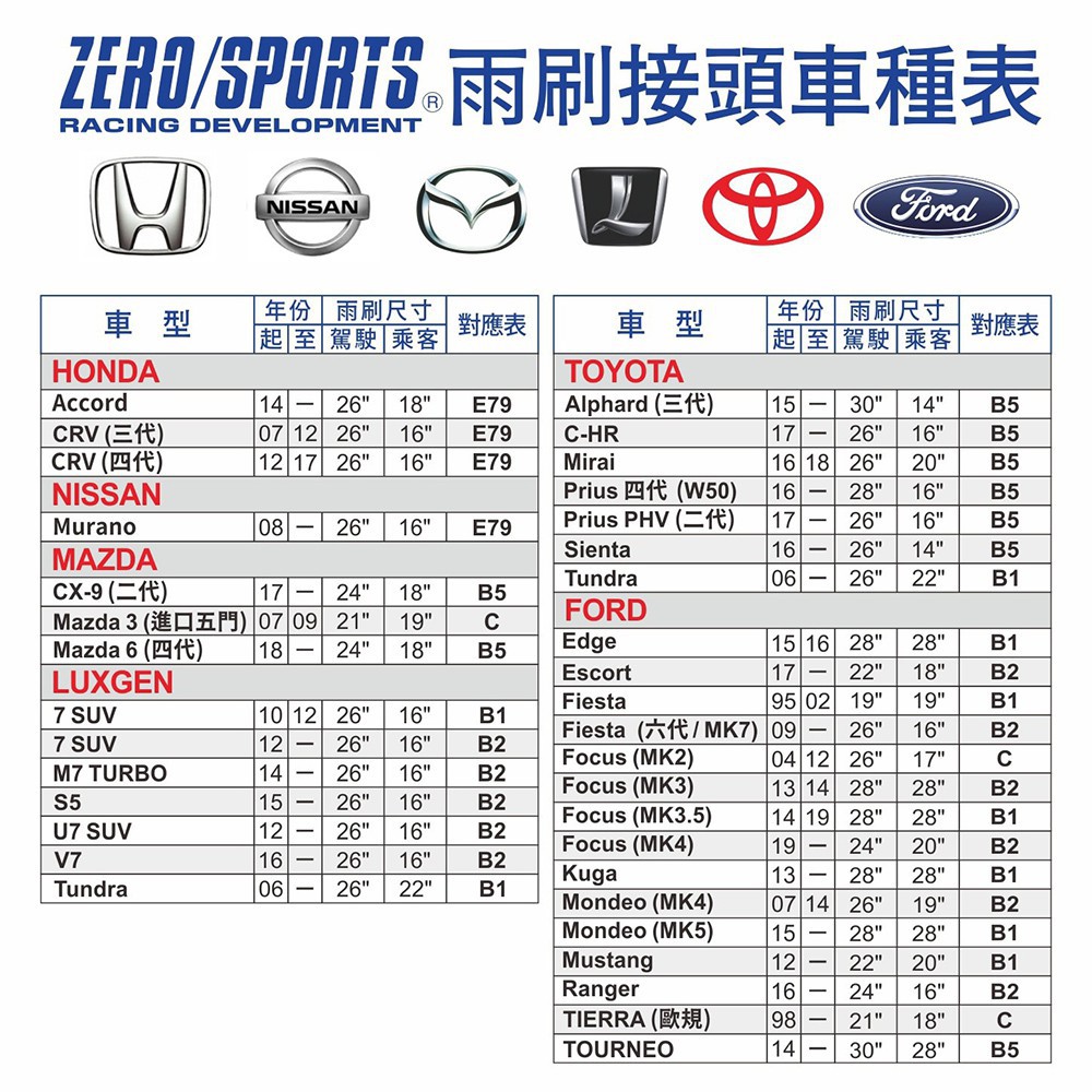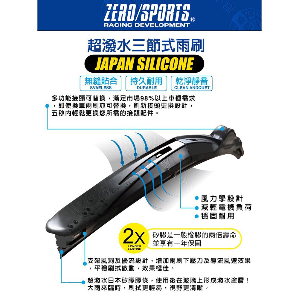 優惠免運中 ZERO SPORTS 日本矽膠三節式超撥水雨刷 單支 日本原裝 專用接頭 適用多車種