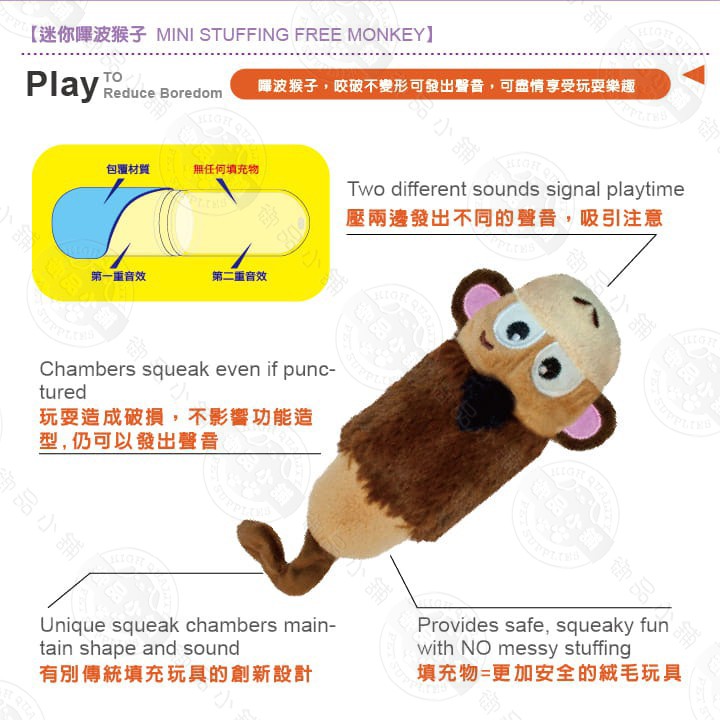 美國 Petstages 633 嗶波猴子 發出聲音 潔牙 咬合 玩樂 吸引狗狗磨牙 狗玩具 寵物玩具