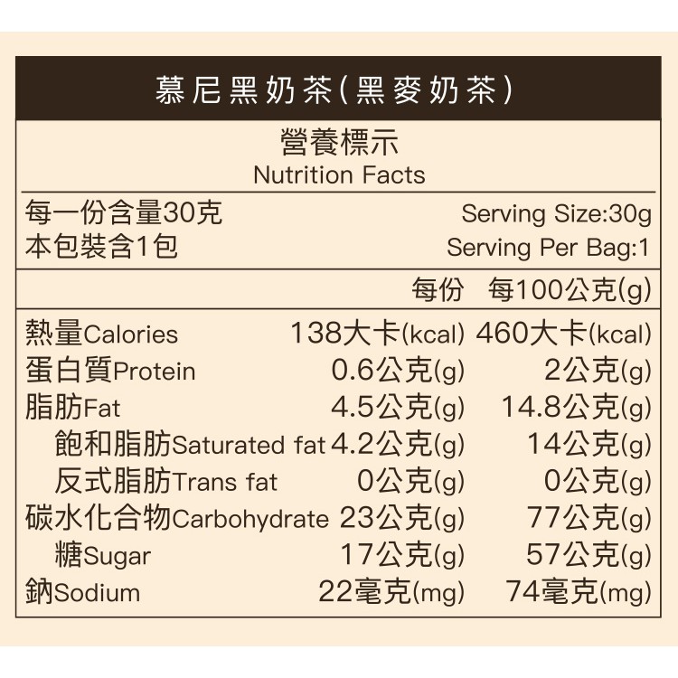 【奇麗灣】慕尼黑奶茶 (黑麥奶茶) 30gx8 入