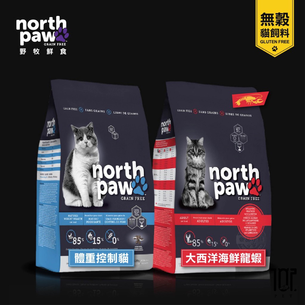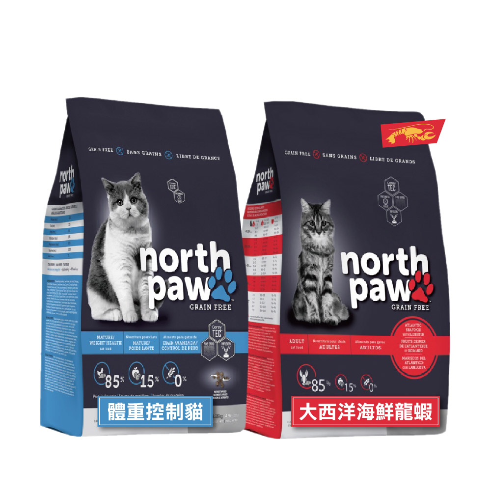 短效出清 免運 north paw 野牧鮮食 無穀貓飼料 1/2.25/5.8KG 體重控制貓/大西洋海鮮龍蝦