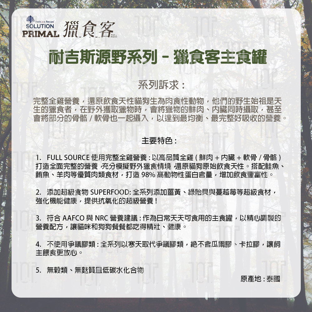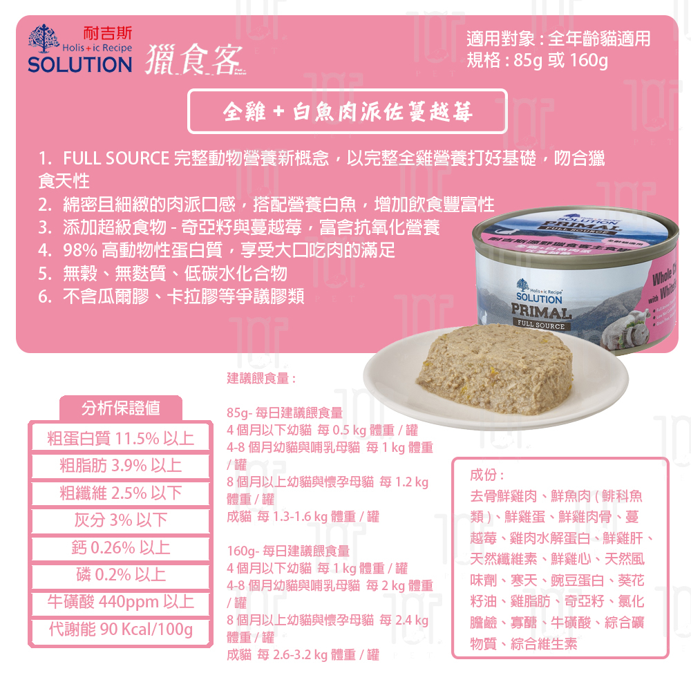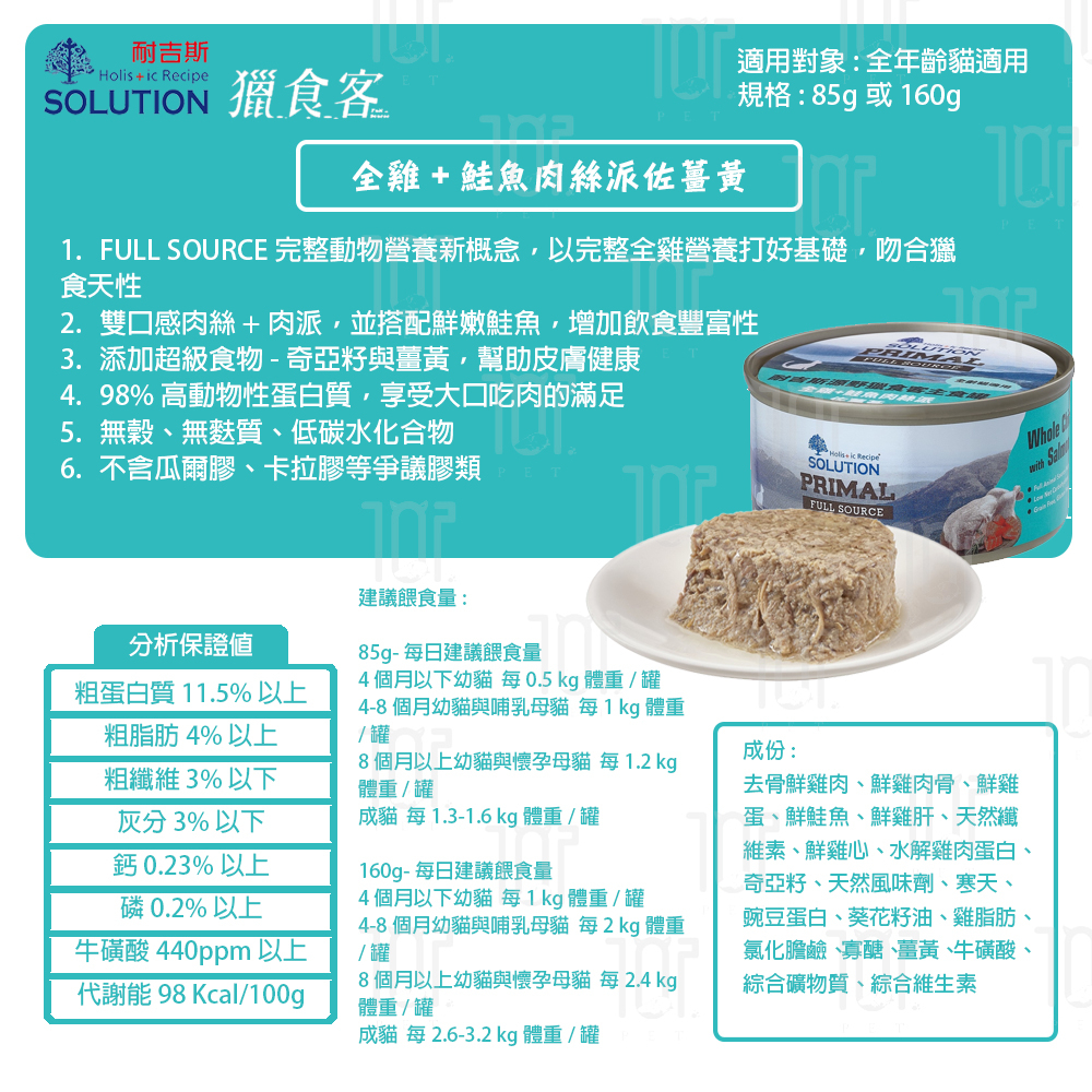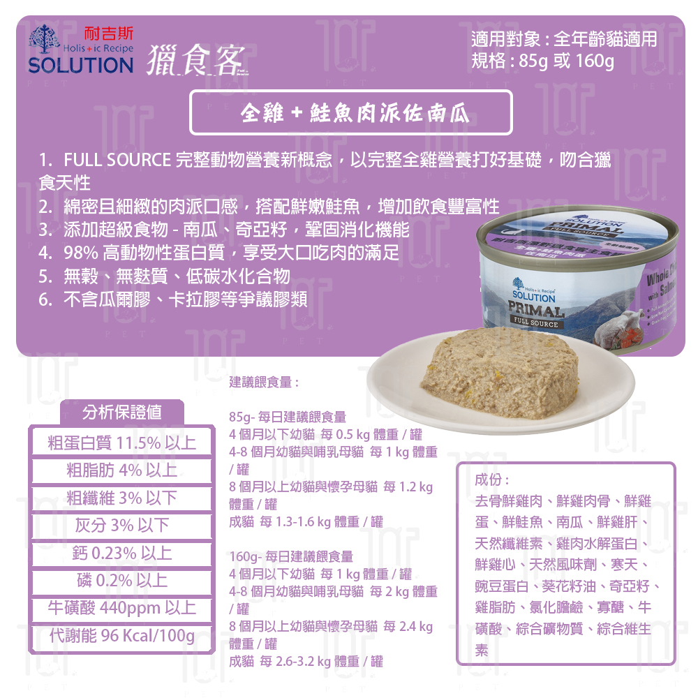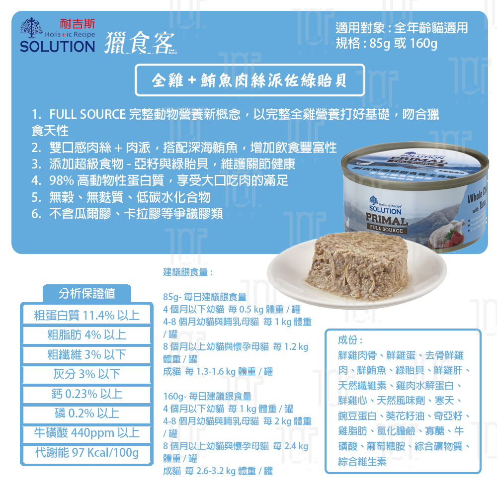 耐吉斯 源野系列 獵食客主食罐 85g 貓用 無穀類 低碳水 高蛋白質 全雞營養 鮭魚/鮪魚/白魚 不含膠類