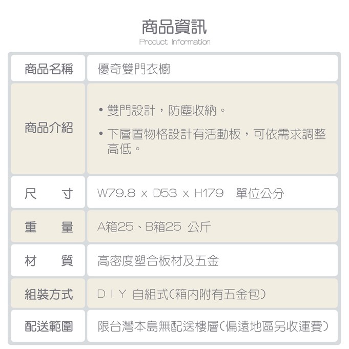 TZUMii武藏二門衣櫥 衣櫥 雙門衣櫃 衣物收納櫃