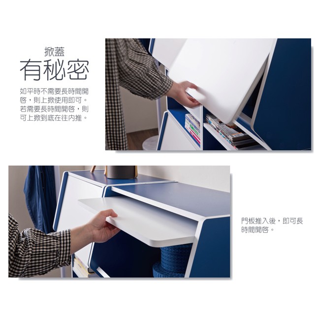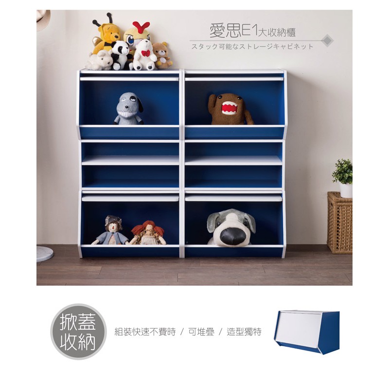 TZUMii 艾莉絲加大掀門櫃 堆疊門櫃 收納櫃 堆疊空櫃 上掀門櫃-藍色2入組