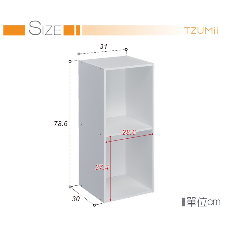 TZUMii 簡約加高二空櫃 書櫃 收納櫃 置物櫃 二格櫃 二層空櫃-白色