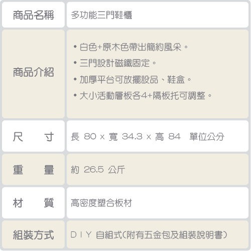 TZUMii多功能三門鞋櫃 玄關櫃 大容量鞋櫃