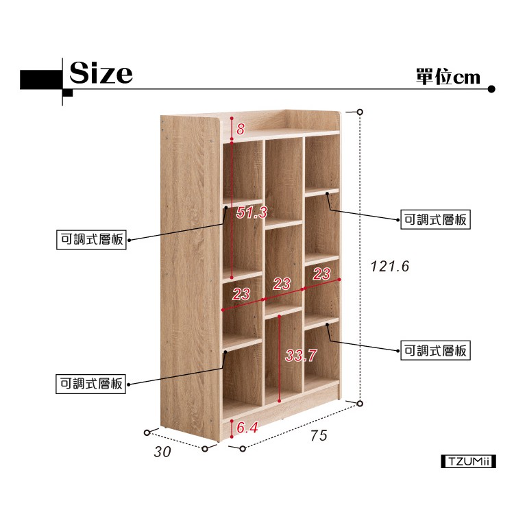 TZUMii萊斯十一格櫃 書櫃 收納櫃 置物櫃 開放式書櫃 展示櫃 大容量-淺橡木色