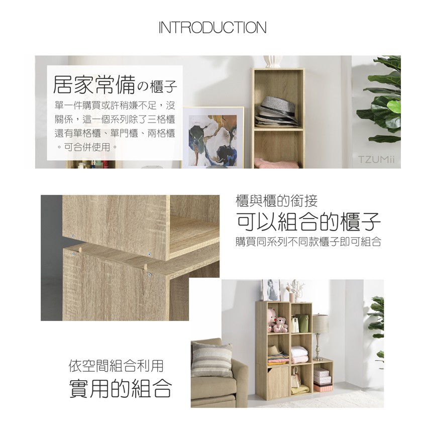 TZUMii 簡約加高三空櫃 書櫃 收納櫃 置物櫃 三格櫃 三層空櫃-淺橡木色