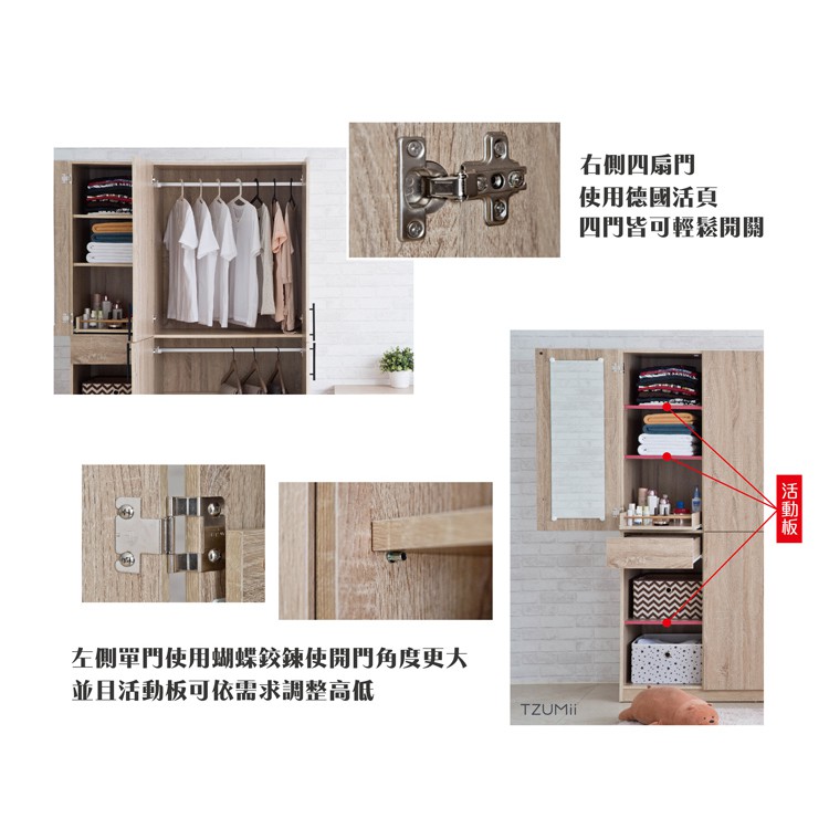 TZUMii 瑪奇朵五門二格衣櫃 衣櫥 衣物收納櫃 整理櫃 大容量 附鏡衣櫥 化妝鏡 化妝櫃