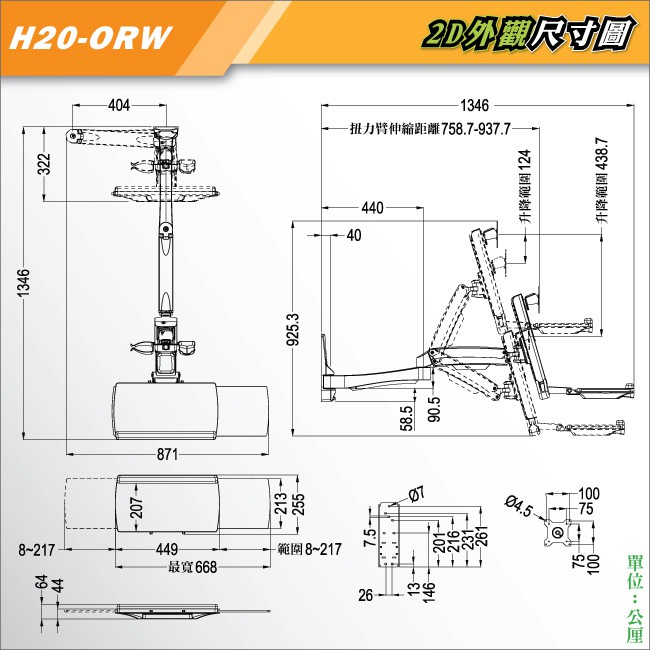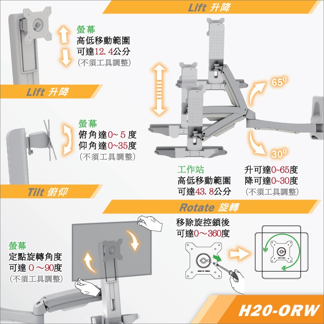 【HE】雙升降雙旋臂互動式工作站(H20ORW) -壁掛型/適用2~8公斤