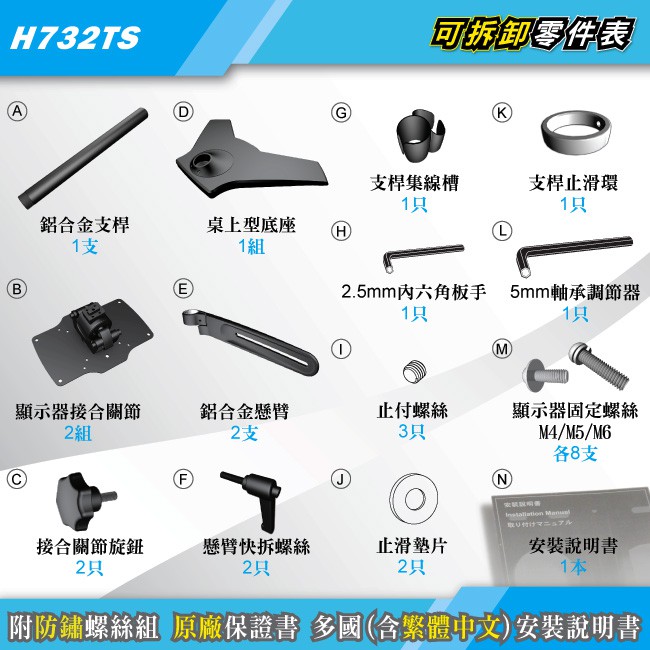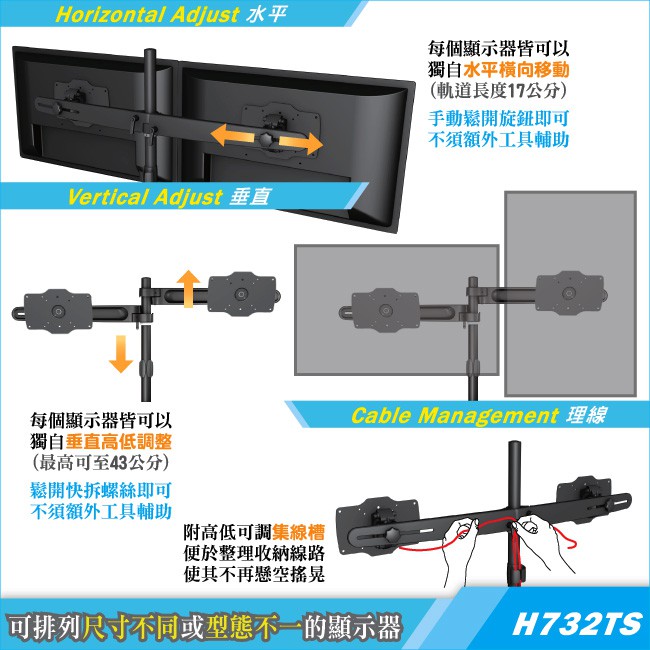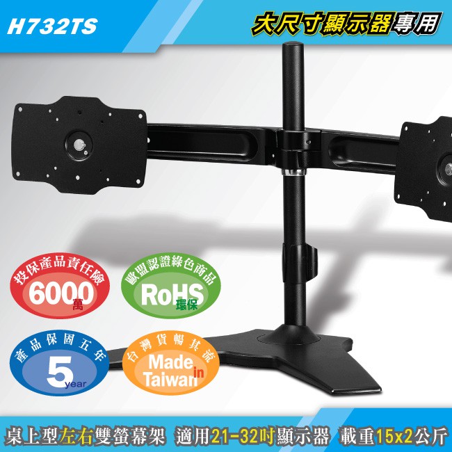 【HE】桌上型左右雙螢幕架(H732TS)-適用21~32吋LED