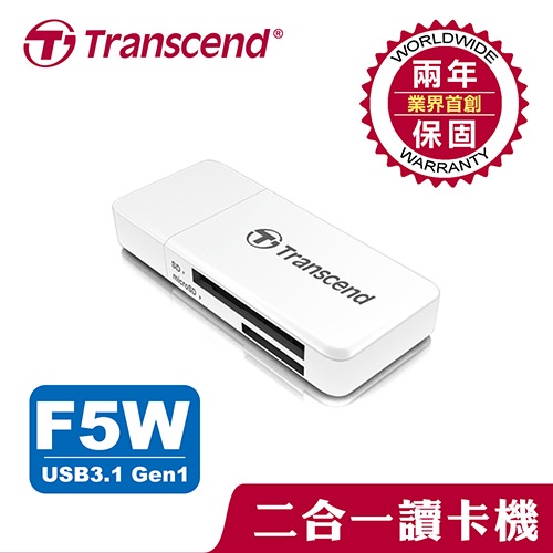 TRANSCEND創見 RDF5 USB 3.1 雙槽記憶卡讀卡機 白