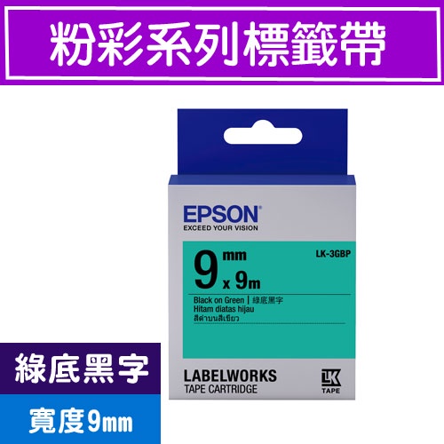 EPSON LK-3GBP S653405標籤帶(粉彩系列)綠底黑字9mm