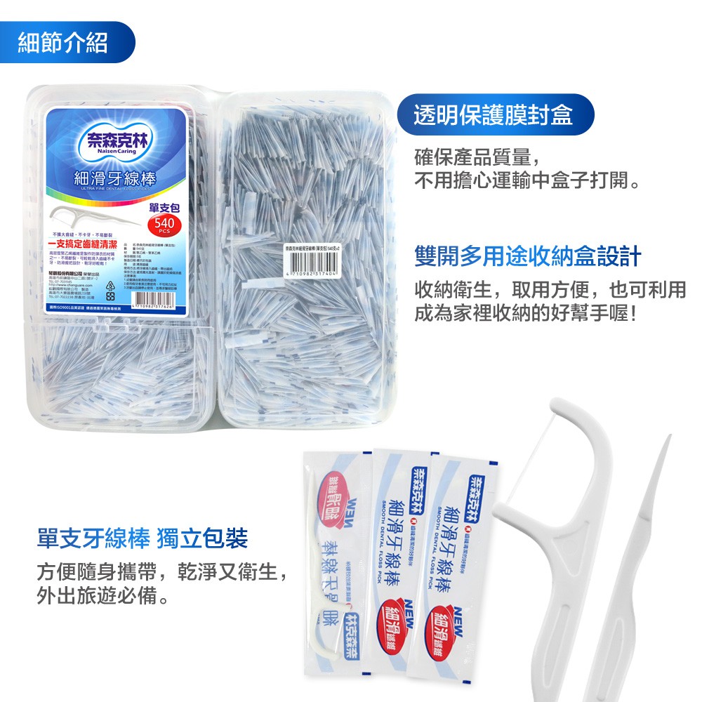 【奈森克林】美式量販店熱銷 細滑 540支 1盒 口腔護理牙線棒 單支包