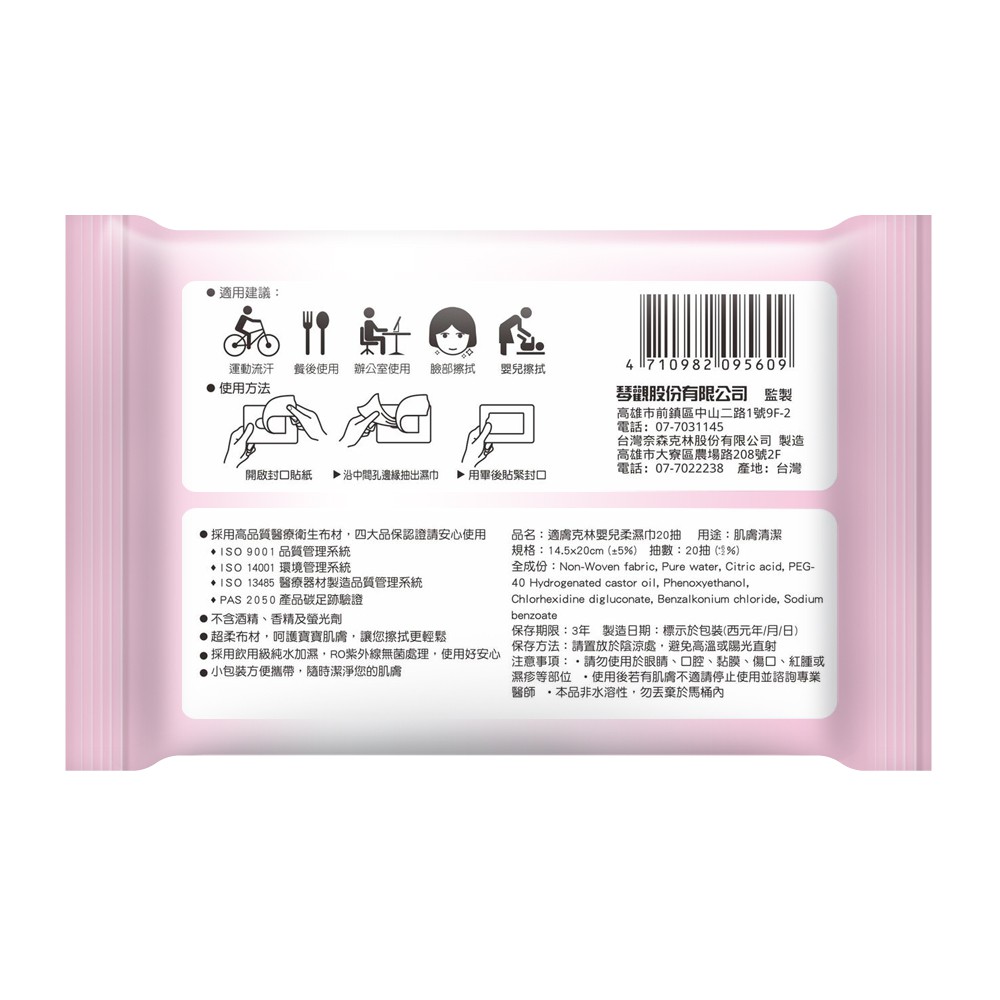 適膚克林 嬰兒純水柔濕巾20抽 無香精酒精螢光劑 SGS檢驗合格 迷你攜帶包