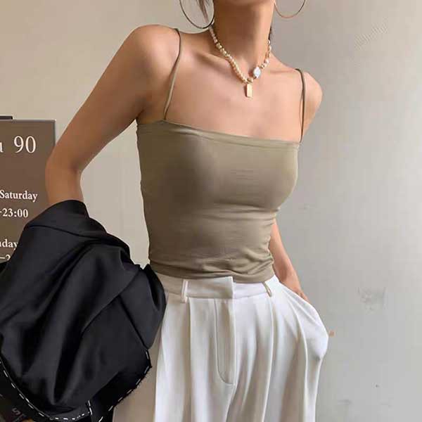 NXS 韓國細肩帶平口背心 冰絲 涼感 萊卡 防走光 小可愛 罩杯 胸墊 性感 歐美 無痕