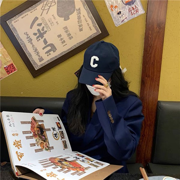 NXS 韓國明星朴敏英同款 C字棒球帽 鴨舌帽 帽子 男女情侶帽 刺繡 字母 百搭 潮流 網紅