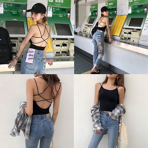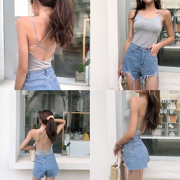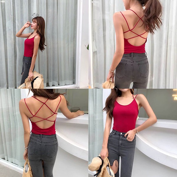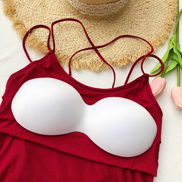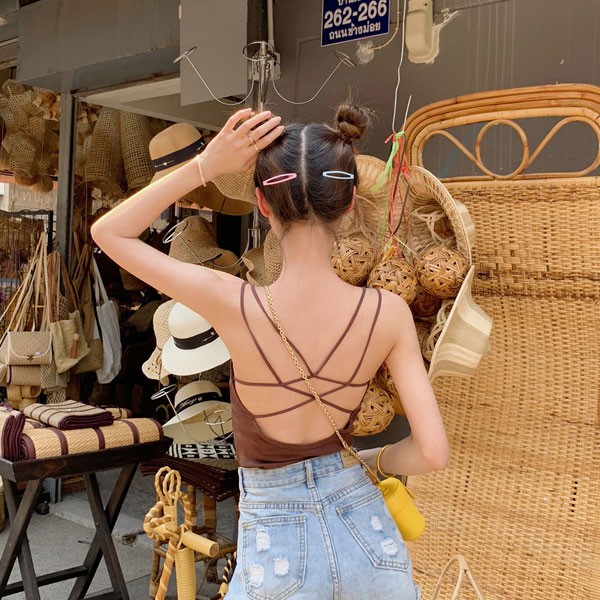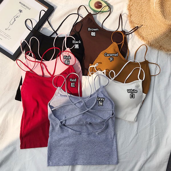 NXS 多色美背罩杯 背心 長版 美背 爆乳 胸墊 細肩帶 交叉 露背 條紋 性感 小可愛 顯瘦 素面 百搭 彈性 海邊