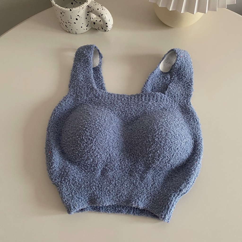 NXS 韓國羊羔絨背心 短版小可愛 絨毛保暖 胸墊罩杯 性感 外穿打底衫 性感百搭 聖誕節跨年新年派對