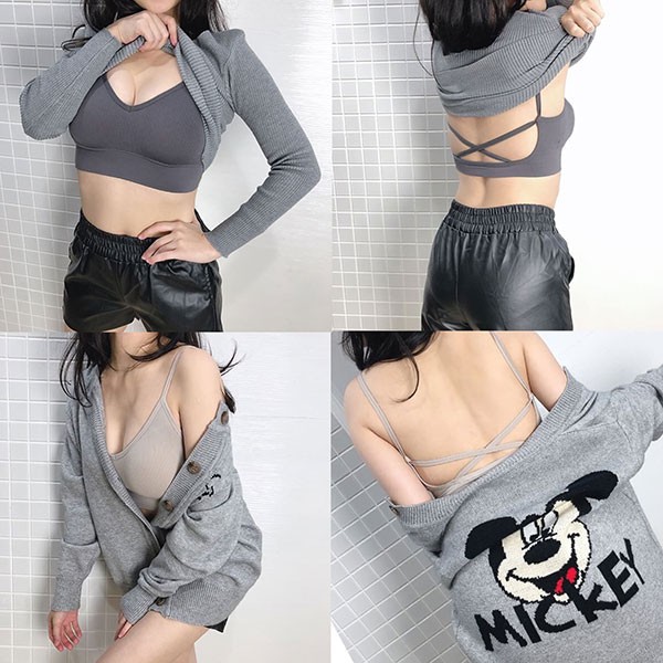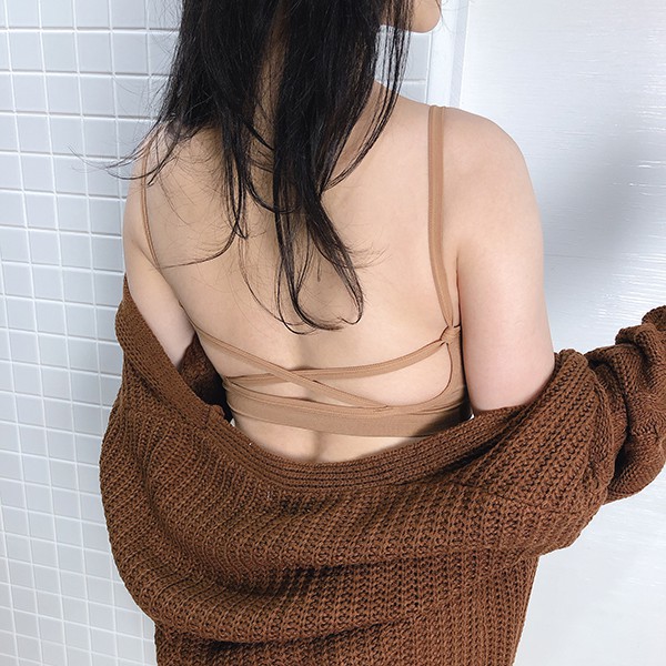 NXS 後叉大U背 大露背 螺紋 背心 小可愛 短版 細肩帶 罩杯 爆乳 性感 彈性 露背 交叉 韓國