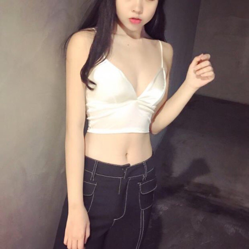 NXS 緞面 深V 馬甲 細肩帶 背心 小可愛 性感 爆乳 比基尼 顯瘦 韓黑白 光澤金屬亮面