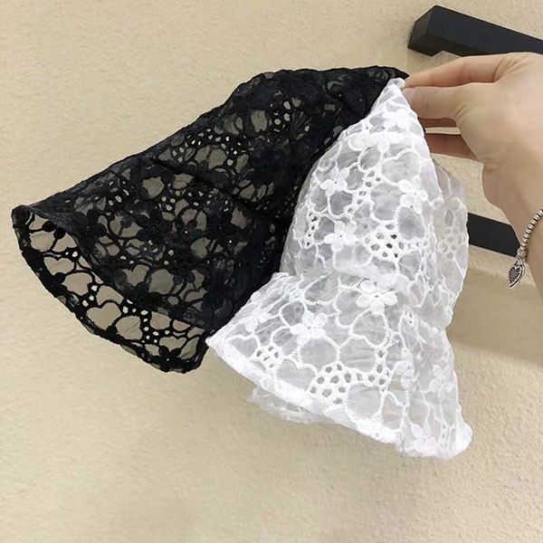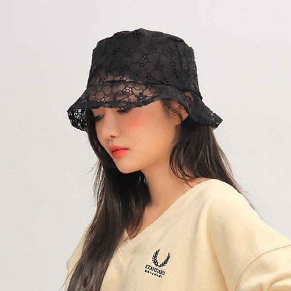 NXS 正韓 透明 蕾絲 漁夫帽 帽子 蕾花 網紗 透視 簍空 刺繡 黑白 韓國