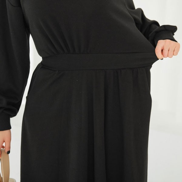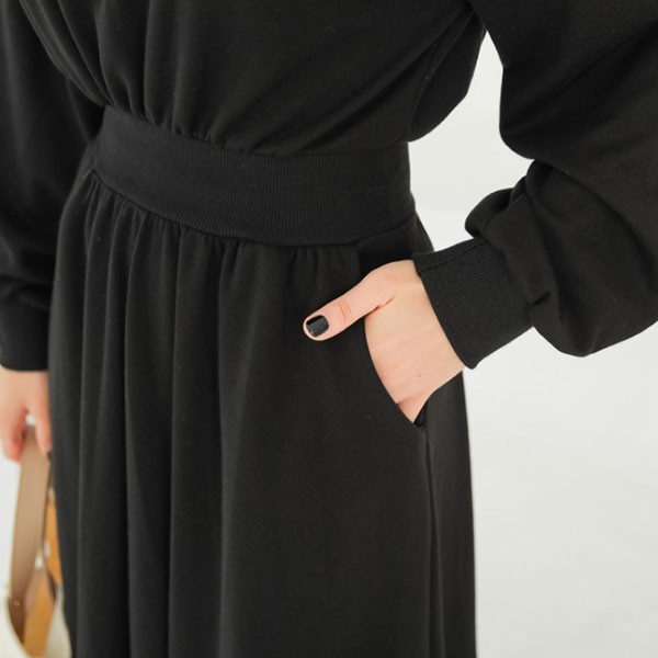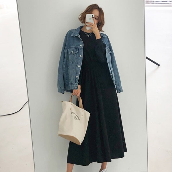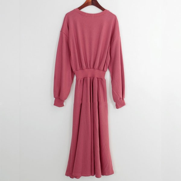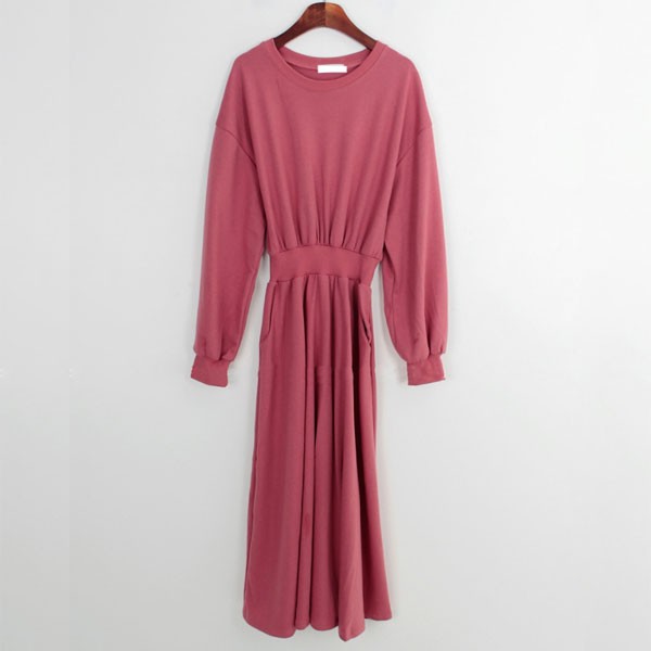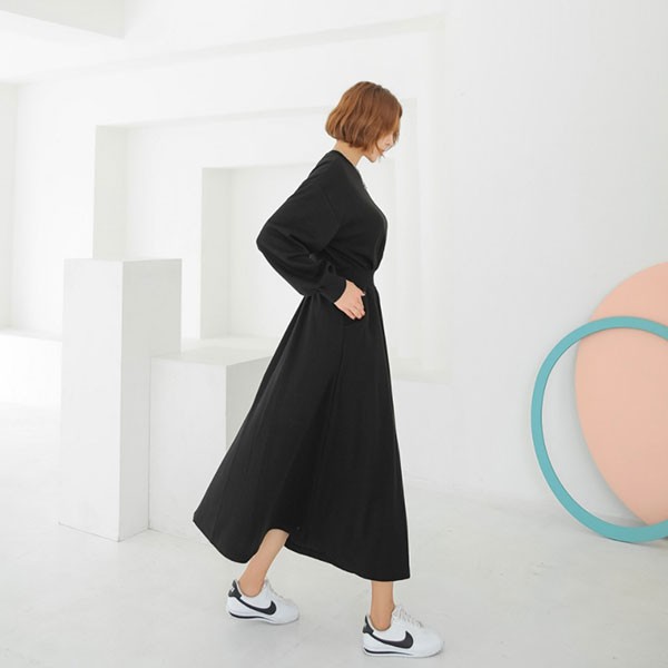 NXS 正韓 縮腰 洋裝 長袖 棉質 休閒 素面 百搭 顯瘦 韓國